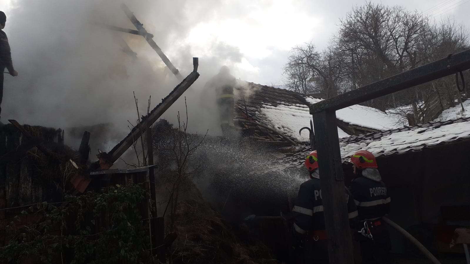 FOTO O şură şi o afumătoare, cuprinse de flăcări