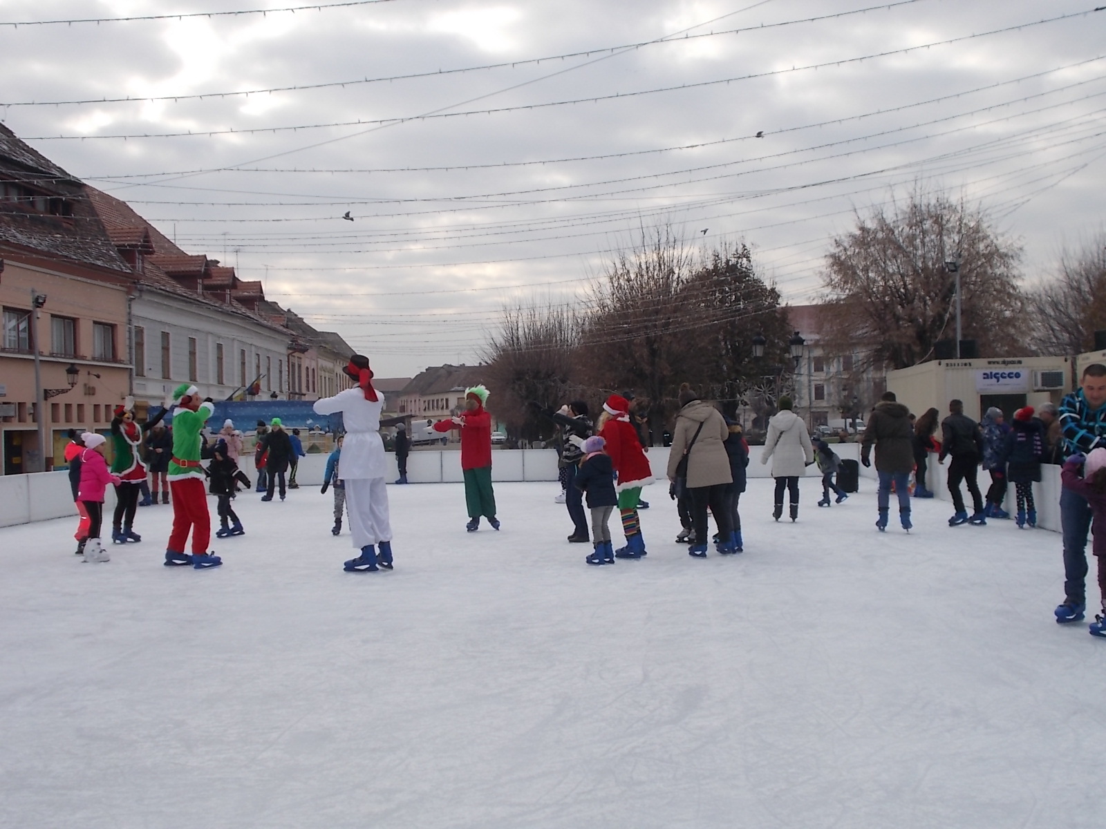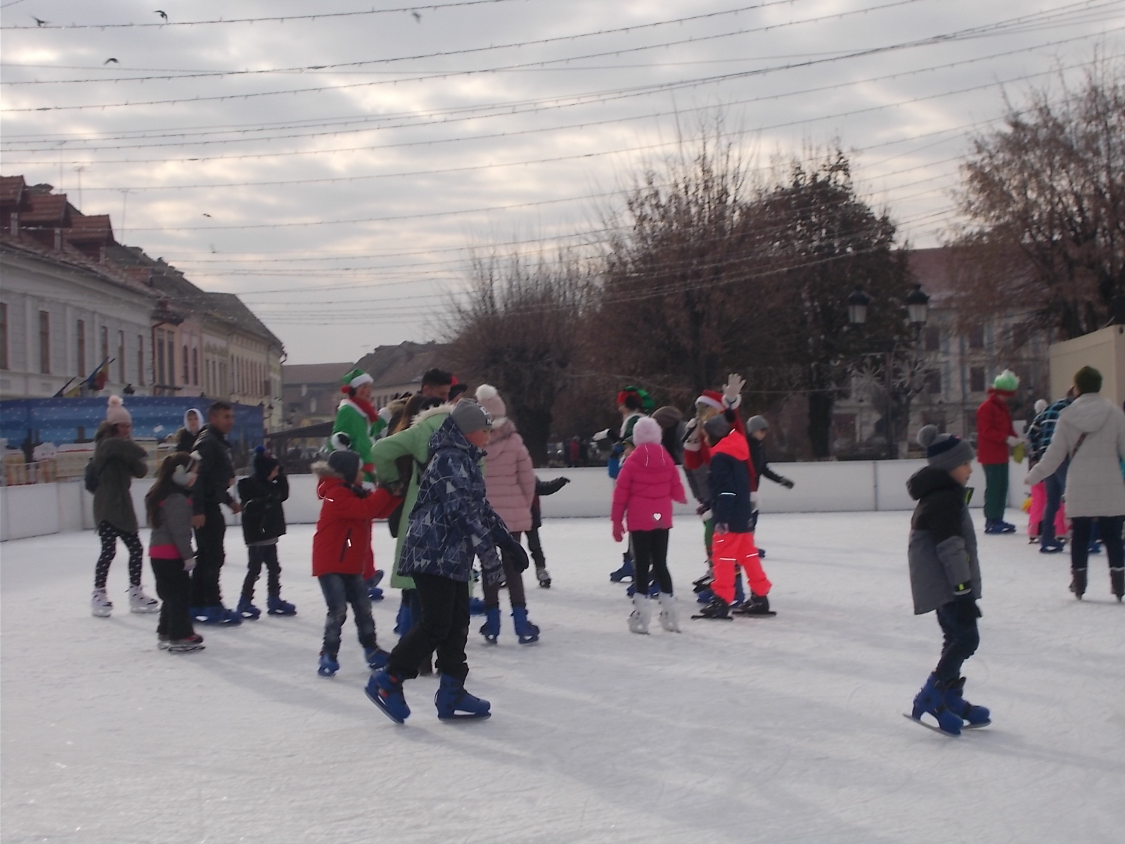 Patinoarul de 600 de metri pătrați, deschis sâmbătă în Piața Regele Ferdinand I, va funcționa mai bine de două luni.
