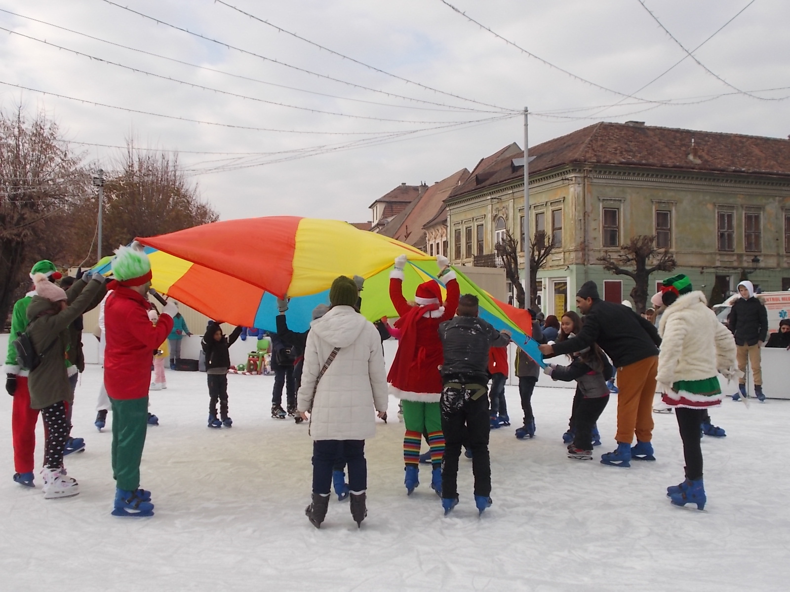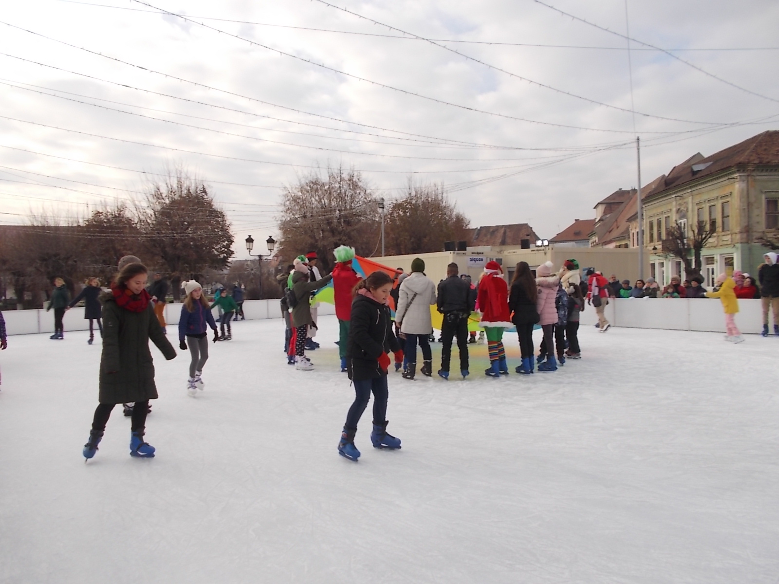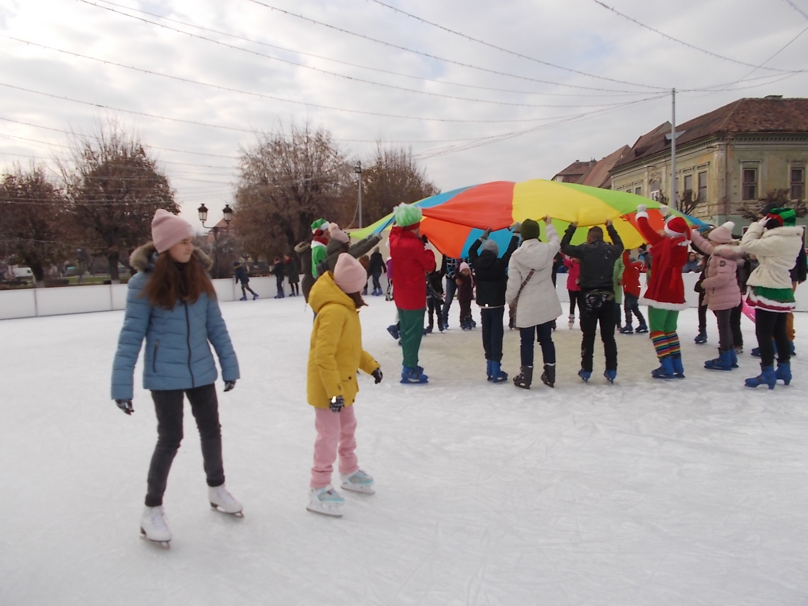 Astfel, începând cu ora 12, Trupa Oaki a prezentat o scenetă comică pe patine, dar și un program de dansuri cu fluiere și multă mișcare. Trupa are programe dinamice în care copiii au fost personajele principale. De asemenea, Clubul lui Miki Mediaș a prezentat povestea lui Grinch, cel care a furat Crăciunul. Acțiunea s-a desfășurat pe patine și povestea l-a prezentat pe Grinch, care e ursuz și supărat tot timpul și nu îi place Crăciunul.