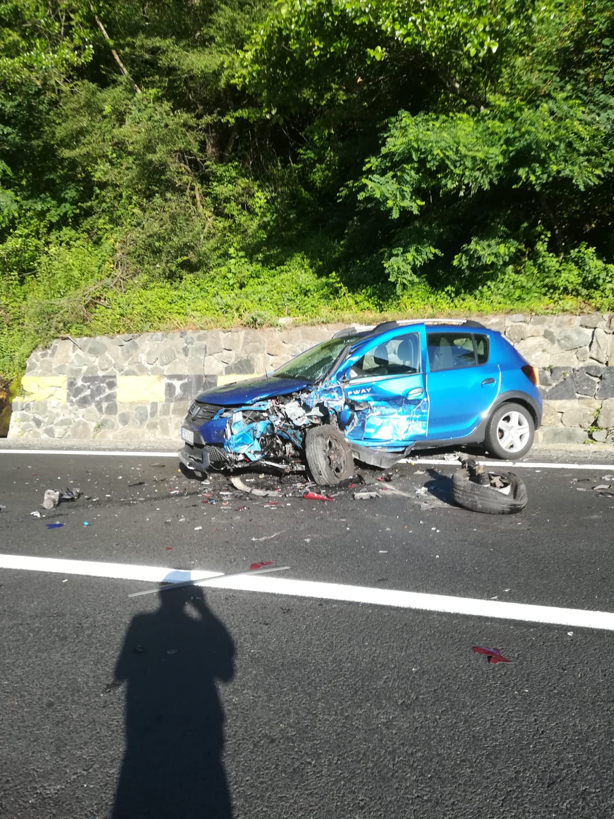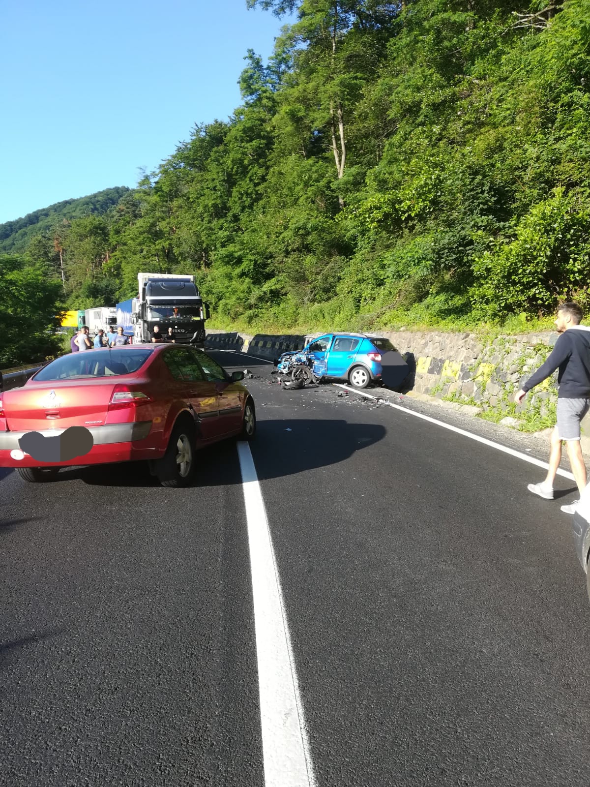 La fața locului intervin un echipaj SMURD și un echipaj din cadrul Serviciului Județean de Ambulanță. Traficul este blocat complet la această oră pe Drumul Național 7, în zona producerii accidentului rutier.