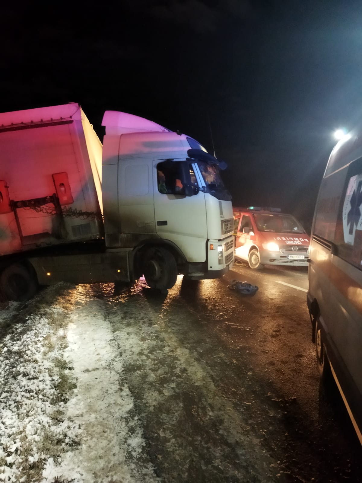 Polițiștii care s-au deplasat la fata locului au stabilit ca pietonul, un bărbat de 41 de ani din Brateiu, circula pe partea carosabila in momentul in care a fost surprins si accidentat de șoferul unui TIR, un bărbat in vârsta de 49 de ani din Harghita.