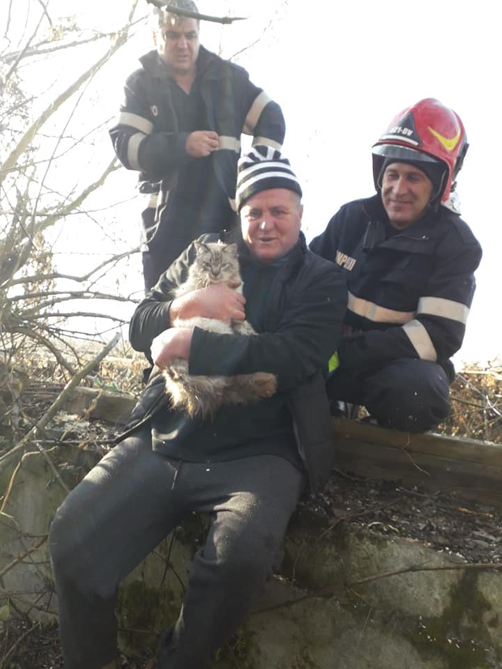 Ajunși la fața locului, salvatorii au intervenit rapid pentru extragerea pisicii și înapoierea acesteia stăpânului, care le-a fost extrem de recunoscător pompierilor.