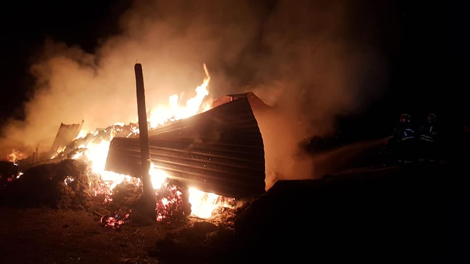 Focul a distrus 350 de baloți de lucernă pe o suprafață de aproximativ 400 de metri pătrați. Pompierii au reușit stingerea focului înainte să se extindă la adăposturile de animale situate în apropierea depozitului de furaje.