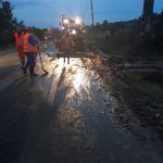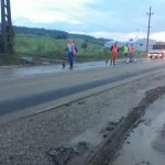 FOTO – Precipitațiile abundente au blocat DN 14 pe un sens, în Dumbrăveni