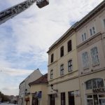 Pompierii din Mediaș au intervenit, joi dimineața, cu două echipaje și o autospecială de salvare la înălțime în Piața Regele Ferdinand I din municipiu pentru îndepărtarea unor țigle care prezentau pericol pentru trecători.