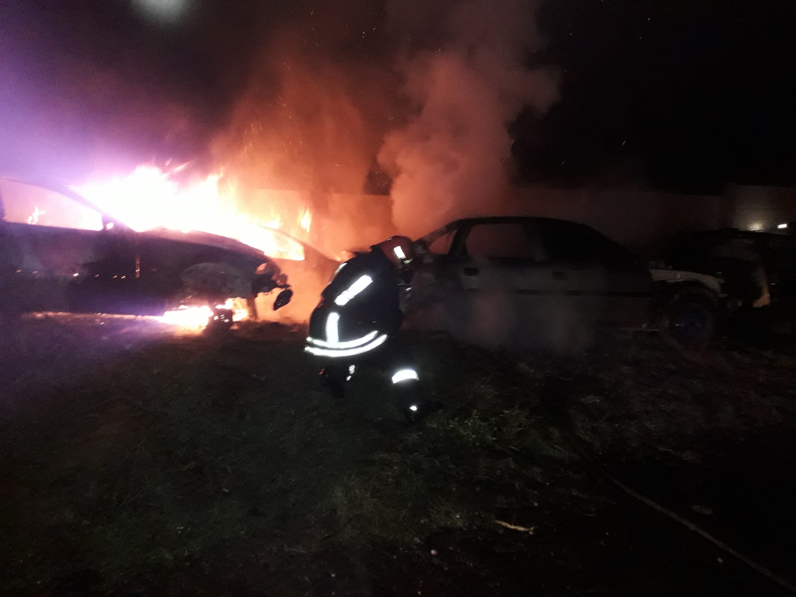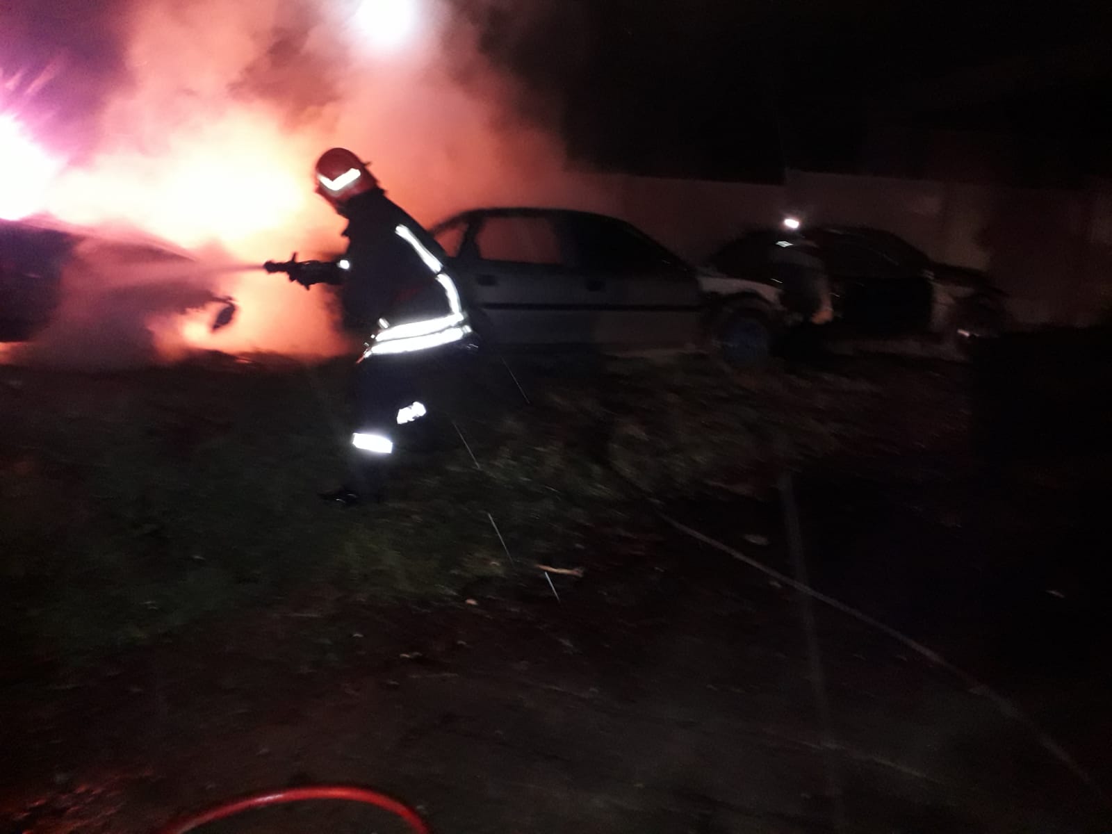Un autoturism a fost cuprins de flăcări, miercuri seara, la Mârșa, focul extinzându-se la alte două autoturisme.