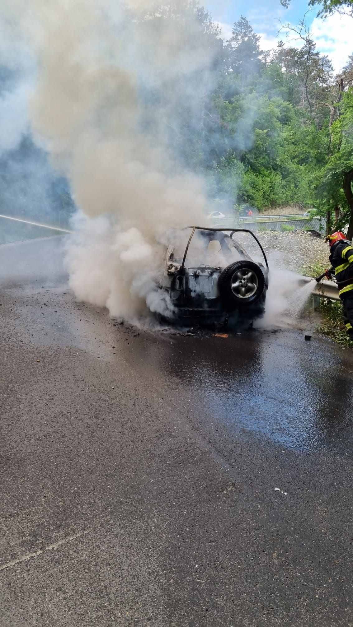 Pompierii militari ai Detașamentului Mediaș au fost solicitați să intervină, vineri după amiaza, pe drumul ce leagă Șeica Mare de Șeica Mică pentru stingerea unui incendiu izbucnit la un autoturism aflat în mers. La sosirea pompierilor, incendiul se manifesta generalizat la întreg autoturismul.