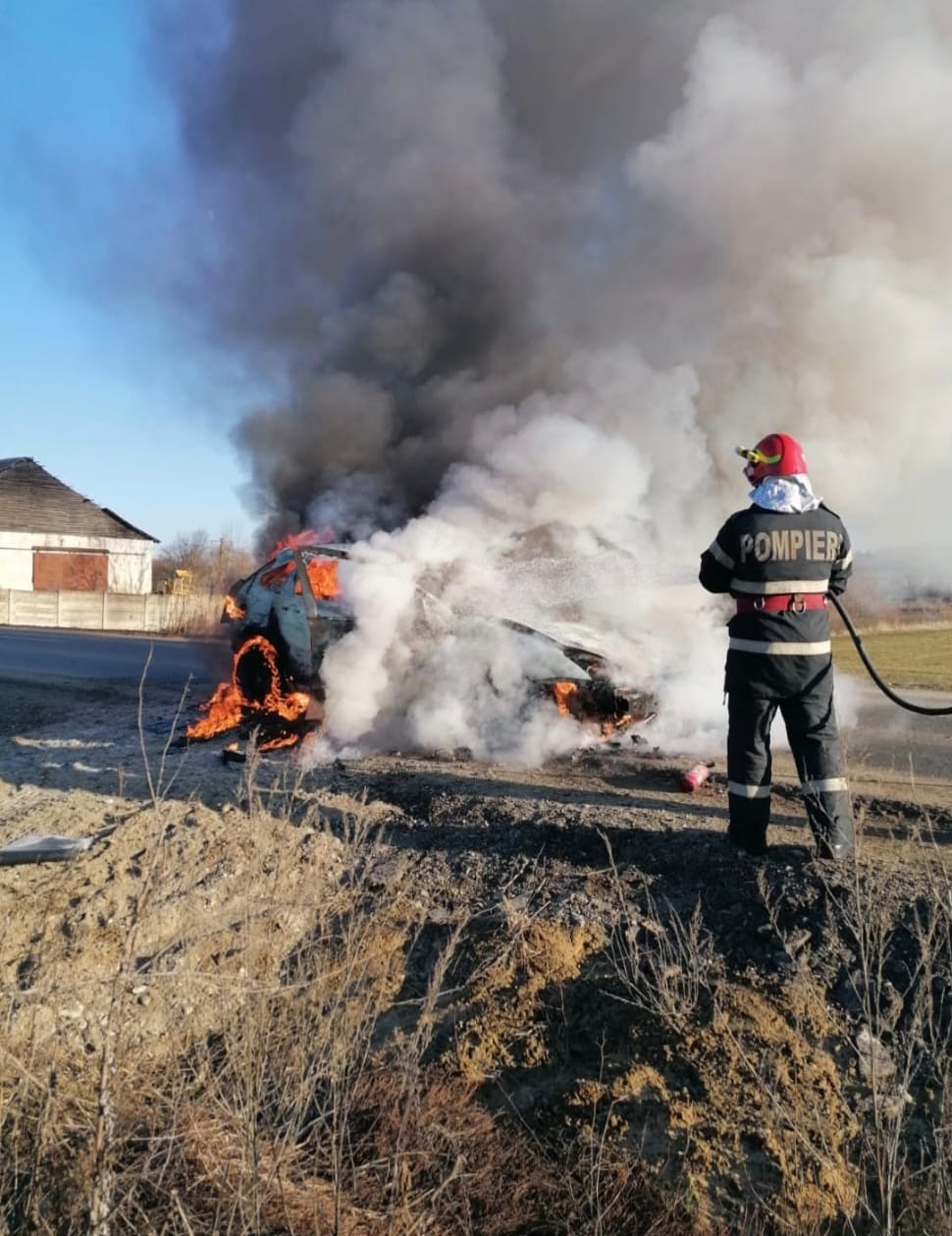 „La încercarea șoferului de a reporni autoturismul, un incendiu violent a izbucnit la compartimentul motor care s-a extins rapid la întreg autoturismul.