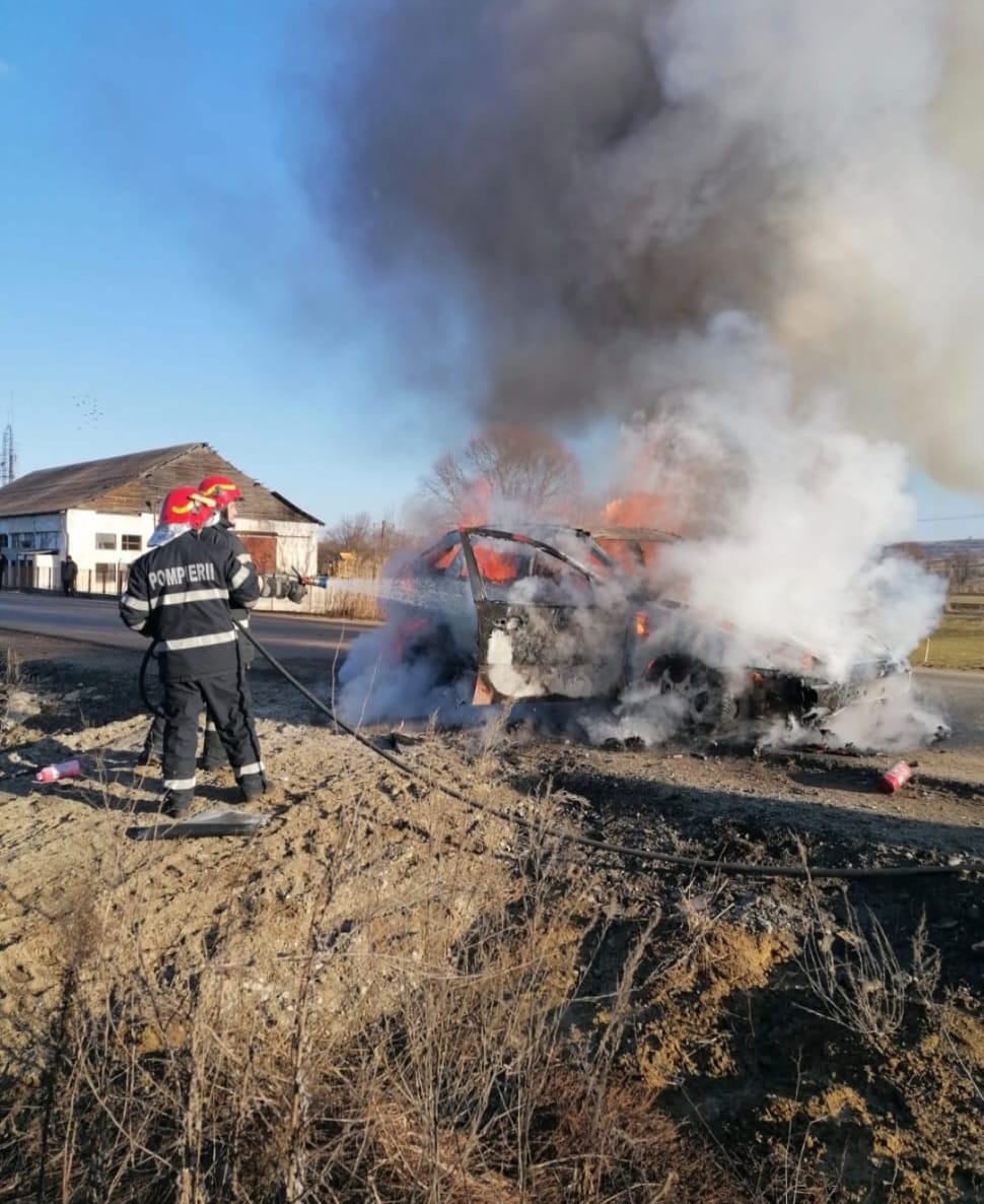 Pompierii Stației Agnita au intervenit, miercuri, cu două autospeciale de stingere pentru localizarea și lichidarea unui incendiu izbucnit la un autoturism care s-a oprit în mers.