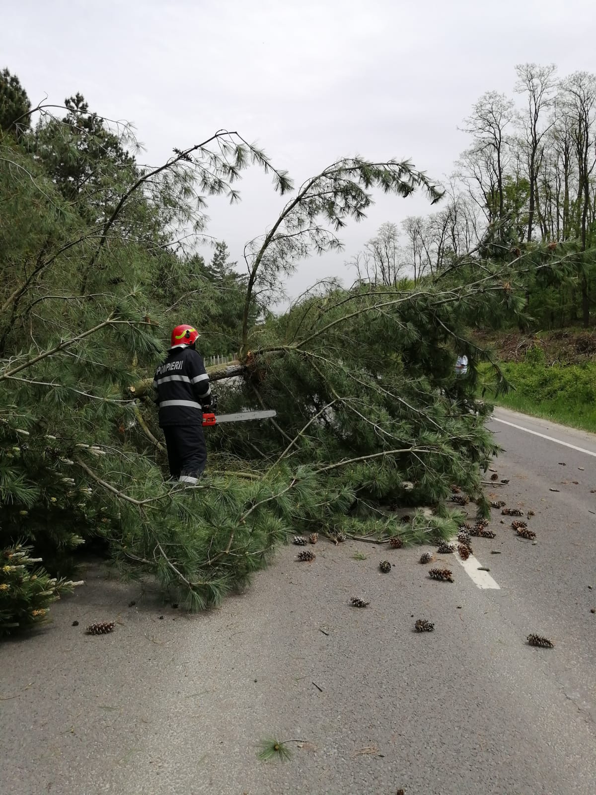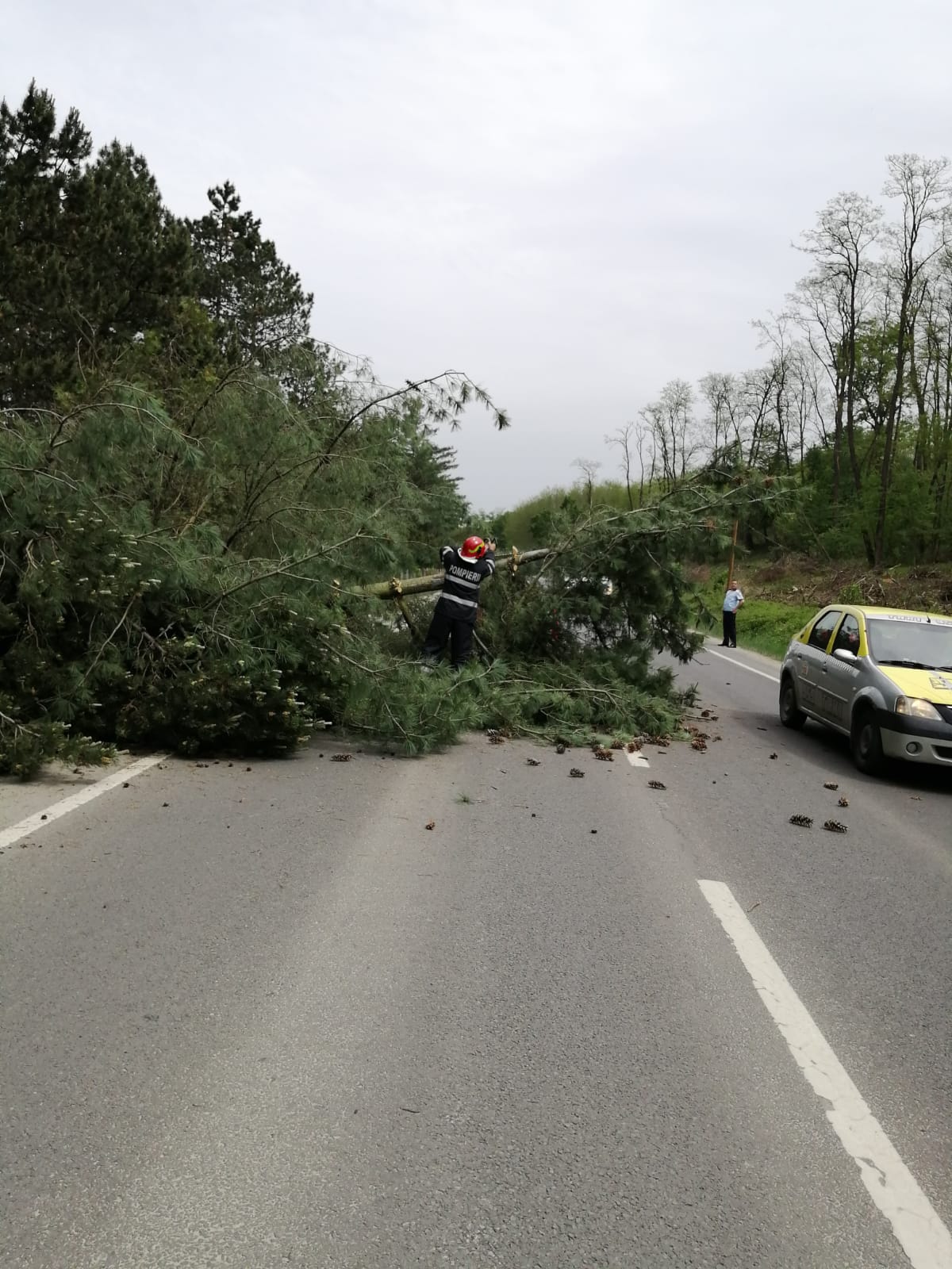 Pompierii din cadrul Secției Mediaș au intervenit, joi după amiaza, cu un echipaj la ieșirea din municipiul Mediaș spre localitatea Dumbrăveni, pentru degajarea unui copac căzut pe șosea.