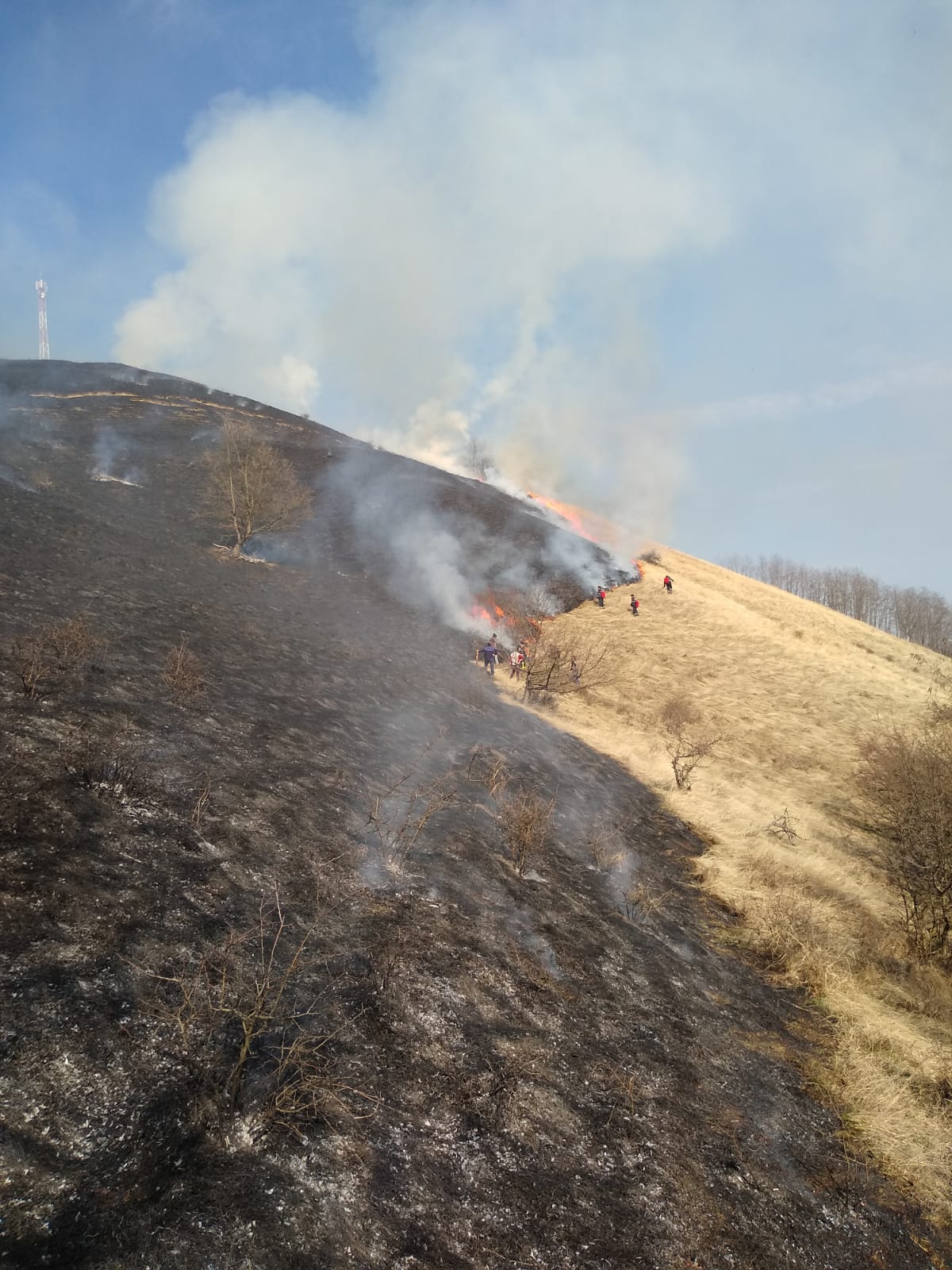 Val de incendii de vegetație, miercuri seara, în județul Sibiu. Pompierii și Serviciile Voluntare pentru Situații de Urgență au intervenit pentru stingerea incendiilor, care au mistuit mii de metri pătrați de vegetație.