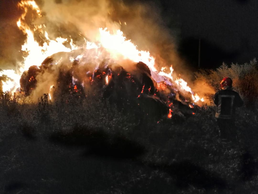 Incendiu puternic, în noaptea de joi spre vineri la Cașolț, zeci de tone de fân fiind făcute scrum.