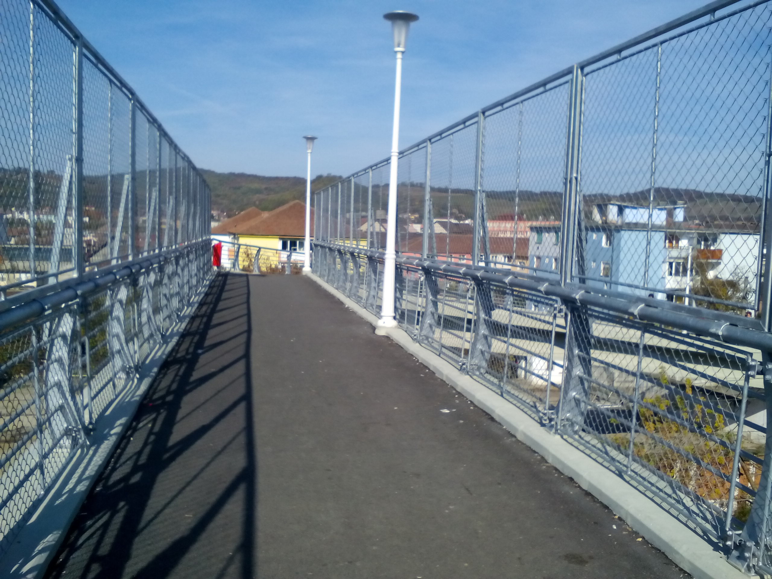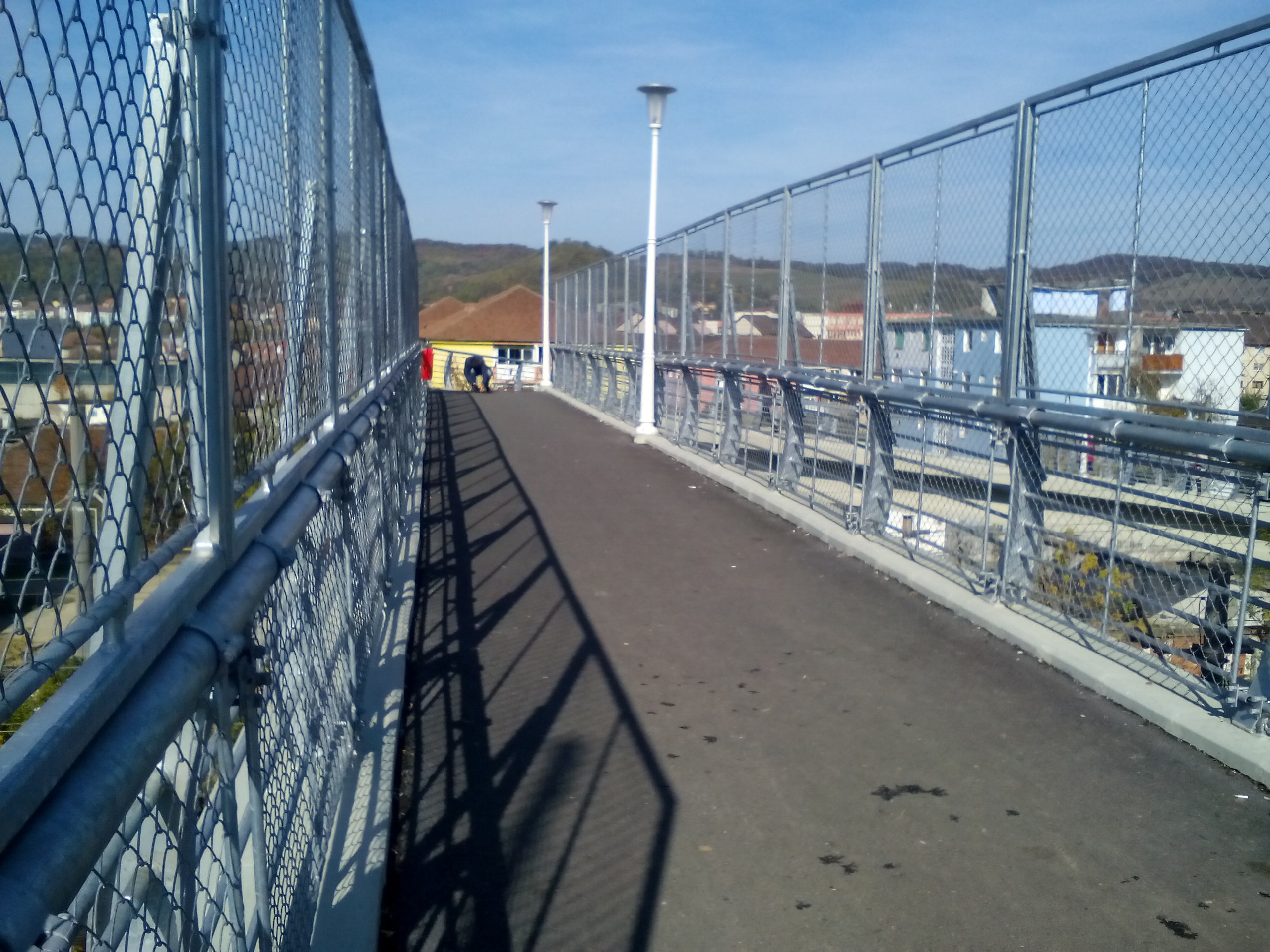 Pasarela de lângă gara din Mediaș, care a beneficiat în ultima jumătate de an de ample lucrări de consolidare și modernizare, a fost finalizată. În cursul zilei de joi comisia de recepție din cadrul Primăriei Mediaș alături de reprezentanți ai Inspecției de Stat în Construcții și societății care s-a ocupat de lucrări au vizitat pasarela pentru a urmări la fața locului felul în care a fost executată investiția. Valoarea totală a lucrărilor a fost de peste un milion de lei, societatea intervenind pentru reabilitări la calea de rulare a pasarelei, montarea balustradei și consolidarea pilelor. Finanțarea investiției a fost asigurată intergral de la bugetul local al municipiului Mediaș, termenul de garanție a lucrărilor diind de doi ani.