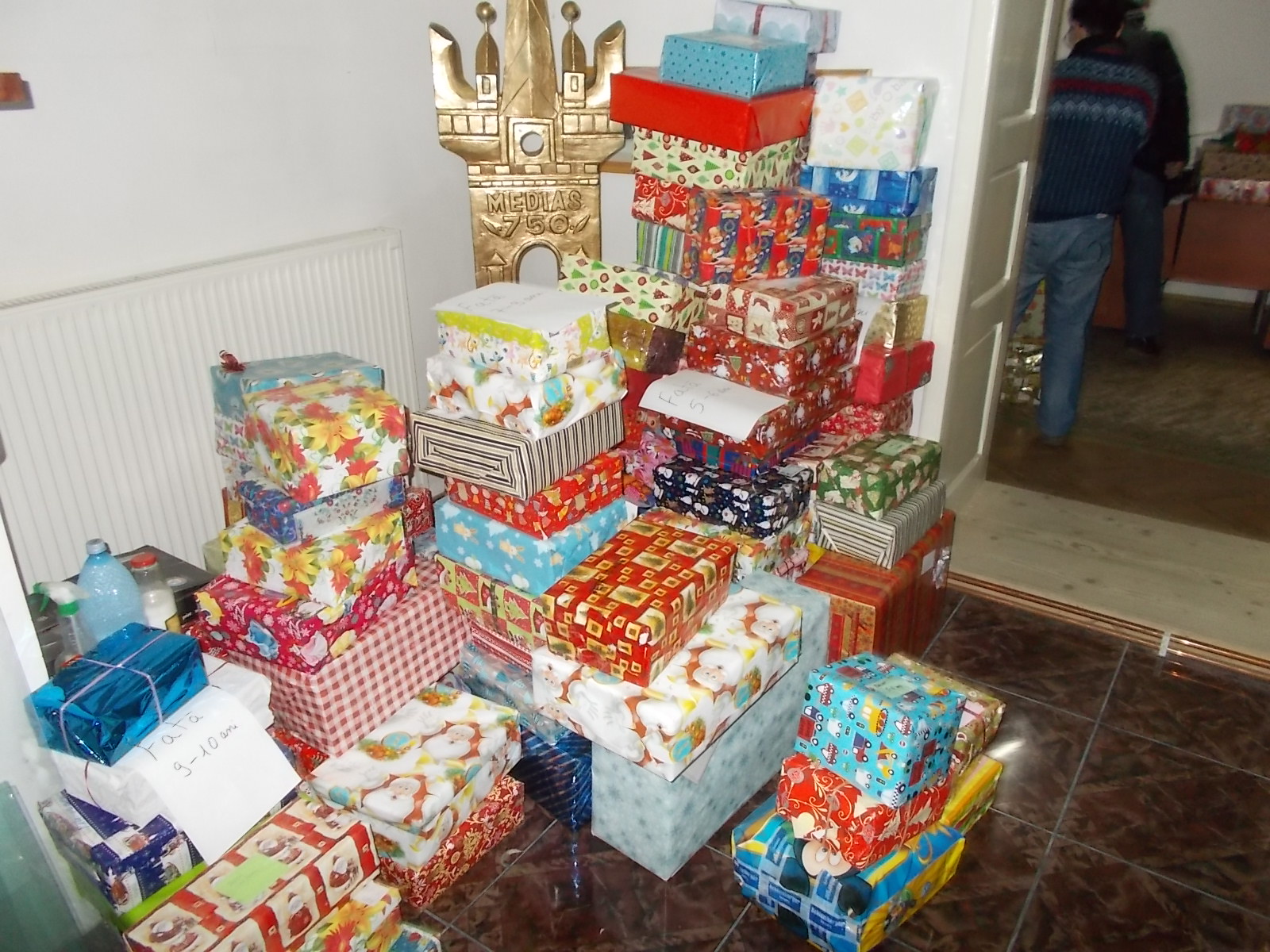 Proiectul ShoeBox 2016, derulat și în municipiul de pe Târnava Mare, a ajuns la final. În cele trei zile de colectatre a pachetelor, membrii Asociației “Mediașul Nostru” şi Rotaract Mediaș au reușit, prin bunăvoința și generozitatea medieșenilor, să adune peste 400 de pachete, depășind numărul impresionant de cadouri strânse anul trecut. Darurile au ajuns sau vor ajunge la comunităţile din Valea Viilor, Nemşa, Ighişul Nou şi în alte zone unde sunt familii care nu au avut parte de un destin prea fericit.