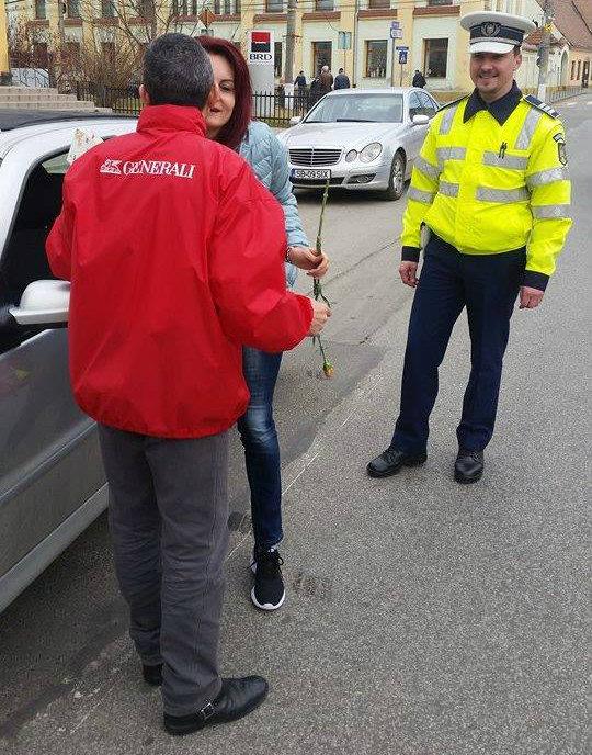 Biroul Poliţiei Rutiere Mediaş a organizat o acţiune cu un caracter mai special. Pentru că nu puteau trece cu vederea Ziua de 1 Martie, poliţiştii au oprit în trafic conducătoarele auto întâlnite, de această dată nu pentru a le avertiza, sau sancţiona, ci pentru a le oferi câte o floare şi un mărţişor. Poliţiştii de la circulaţia din Mediaş nu au uitat de semnificaţia zilei de 1 Martie şi au oprit în trafic femeile care se aflau la volan. Extrem de surprinse şi speriate la început, doamnelor le-a revenit zâmbetul la loc când au văzut că în locul procesului verbal, agentul de circulaţie le-a înmânat o floare. După ce le-au oferit florile, polițiștii de la Biroul Rutier din municipiu le-au urat doamnelor și domnișoarelor de la volan o primăvară frumoasă și fără evenimente rutiere. „Cu ocazia zilei de 1 Martie, lucrătorii Biroului Poliţiei Rutiere Mediaş au oprit în trafic conducătoare auto, dar şi persoane de sex feminin care se deplasau în calitate de pieton, oferindu-le o floare şi urându-le „La Mulţi Ani” cu ocazia zilei de 1 Martie”, ne-a spus inspectorul principal Ion Mogoşan, şeful Poliţiei Rutiere Mediaş.