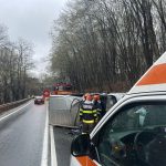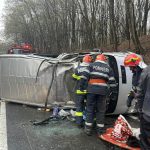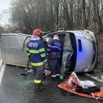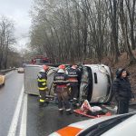 FOTO 9 persoane implicate într-un accident rutier după ce un microbuz s-a răsturnat pe Hula Bradului