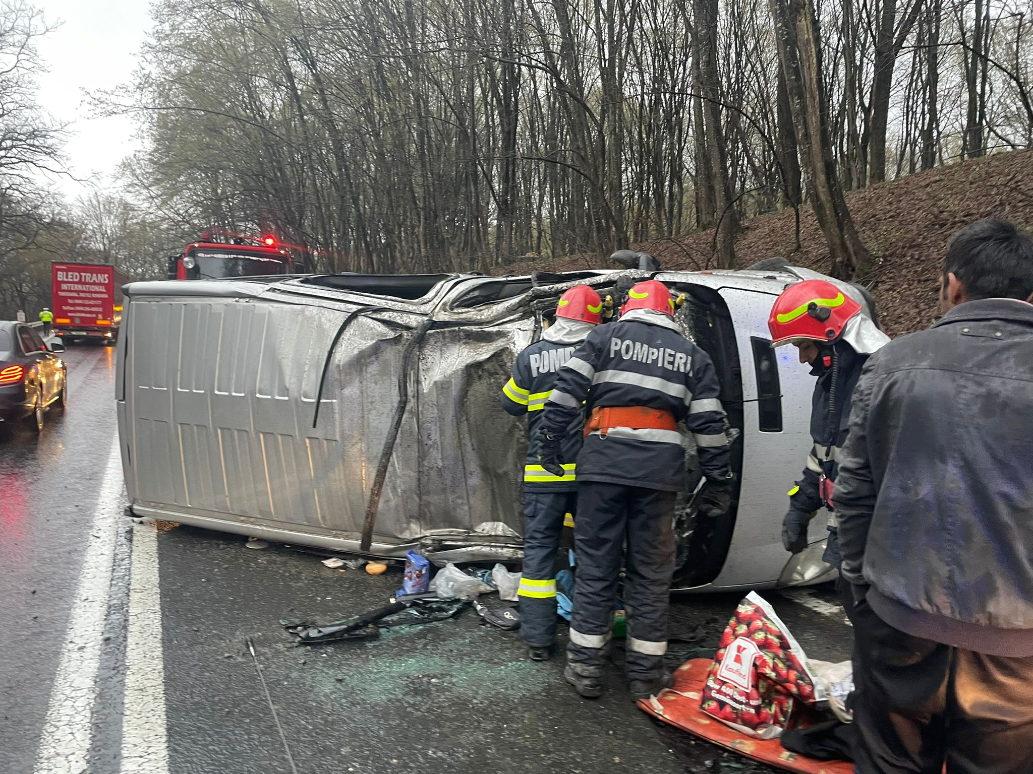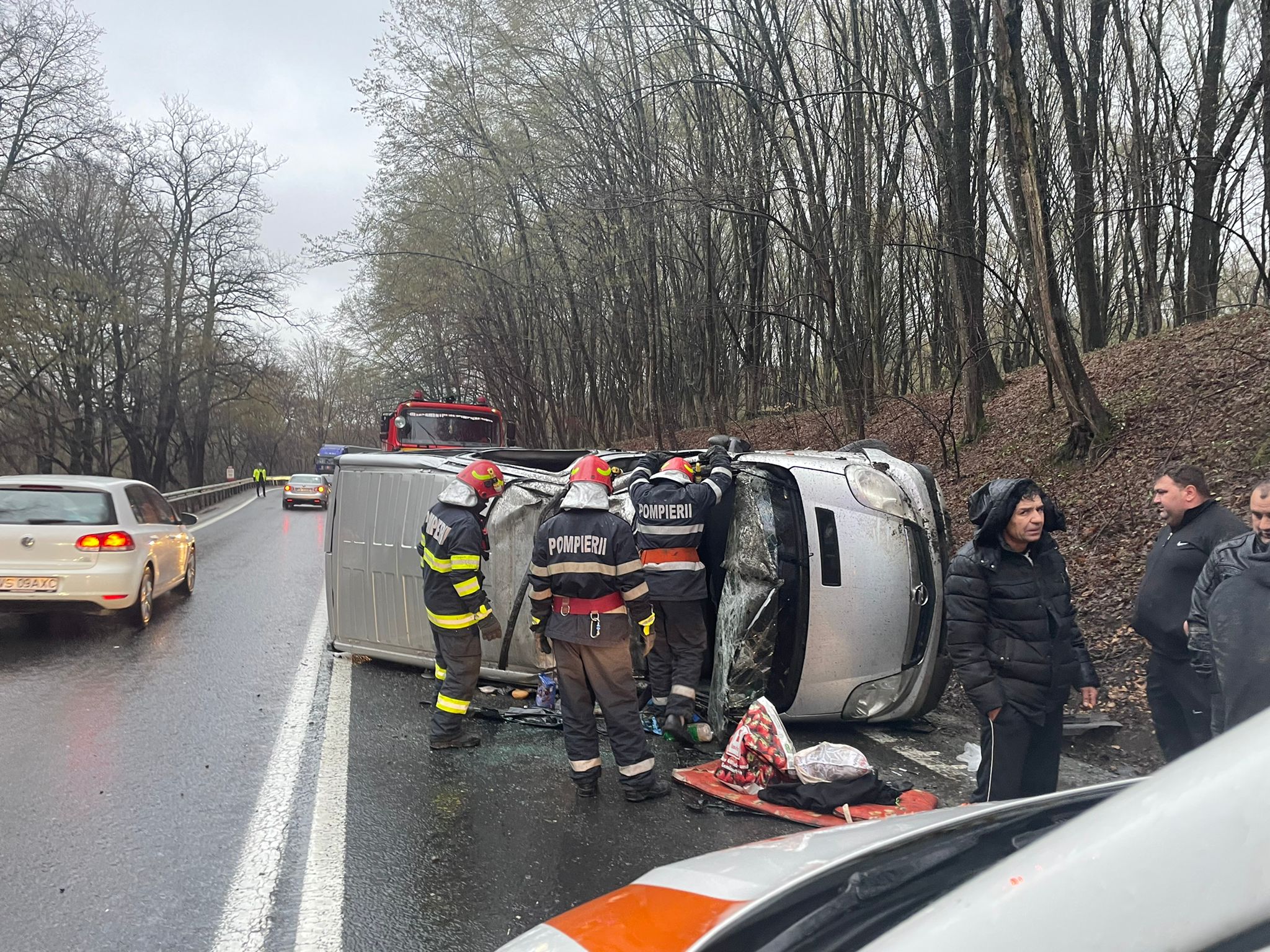 Din primele cercetări efectuate se pare că șoferul unui microbuz destinat transportului de persoane, condus pe Drumul Naţional 1, pe direcția Sibiu – Brașov, la km. 292+500 de metri, ar fi pierdut controlul direcției de deplasare, răsturnându-se pe carosabil, pe sensul opus de mers. Conducătorul auto este un tânăr în vârstă de 25 de ani, din judeţul Mureș. Microbuzul are capacitatea 8+1, în interior se aflau 8 pasageri, adulți, și conducătorul auto.
