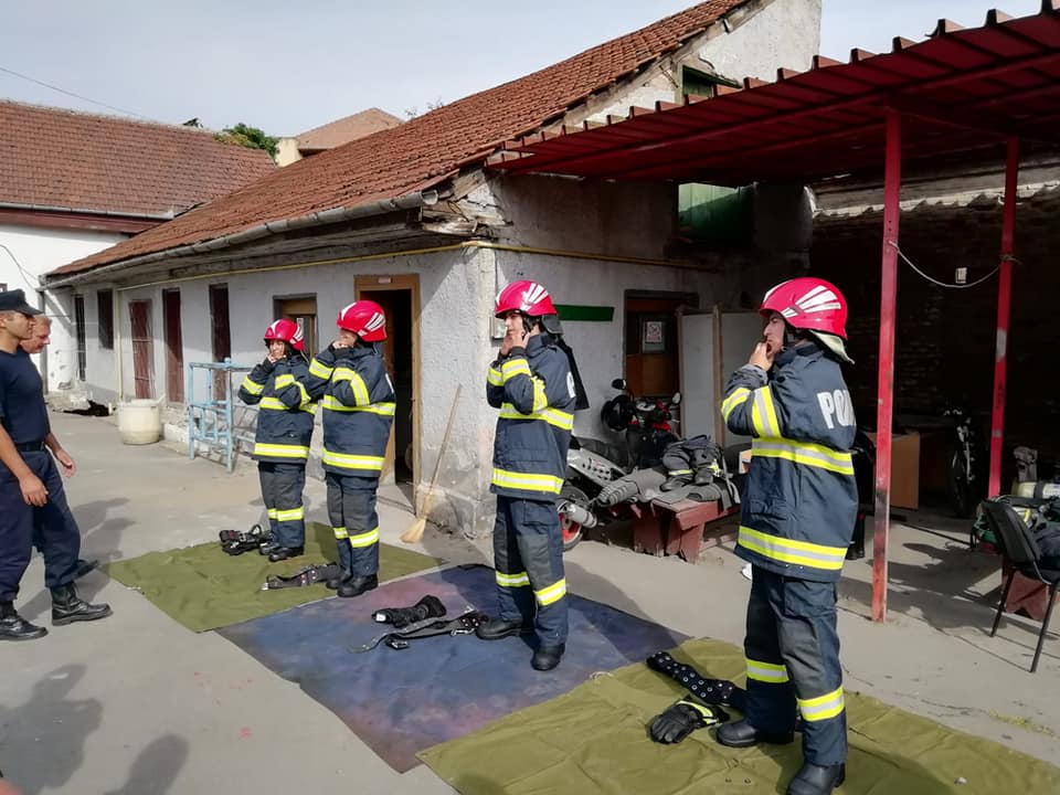 Echipați asemenea pompierilor adevărați, copiii s-au alăturat salvatorilor militari din cadrul Secției de pompieri Mediaș parcurgând toți pașii privind desfășurarea unei intervenții reale la incendiu.
