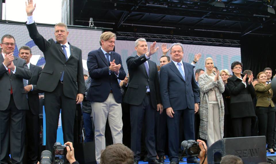 „Mărturisesc, nu e uşor, e un moment special pentru mine. Nu m-am gândit că voi fi aici, nici în urmă cu 30 de ani, când am început să predau ca profesor, nici în urmă cu 14 ani, când am devenit primar. Nu m-am gândit că eu, un profesor de liceu, cu nume de neamţ, dintr-un oraş din centrul ţării, voi fi astăzi în faţa a zeci de mii de oameni entuziaşti, vorbind în numele a milioane de susţinători, cu o viziune pentru România. Democraţia şi libertatea au făcut acest lucru posibil. Dar mai ales voi, cetăţenii acestei ţări, cu generozitatea voastră, cu deschiderea voastră, voi aţi făcut acest lucru posibil. Este o onoare şi o mare responsabilitate. Pornesc în această bătălie pentru Preşedinţia României cu încredere şi convingere”, a fost mesajul lansat de Klaus Iohannis.