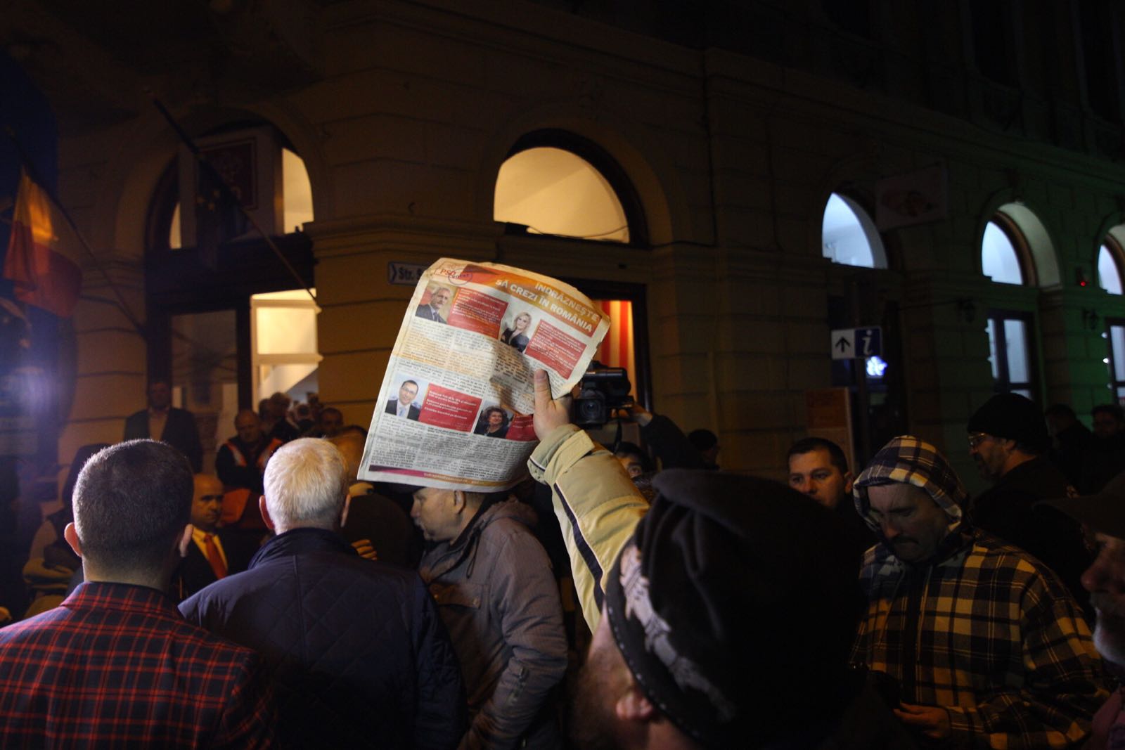 „Sunteţi incredibili. Ruşine să vă fie că v-aţi aliat cu un infractor. Facem scut şi îl dăm afară din Sibiu! Sibiul nu e Teleorman. Spuneţi-i să nu mai vină! Arătaţi că sunteţi oameni cinstiţi şi corecţi şi susţineţi România! Râdeţi şi vă bucuraţi şi îl aşteptaţi să pupaţi mustaţa unui infractor”, au spus oamenii adunaţi în faţa PSD Sibiu.