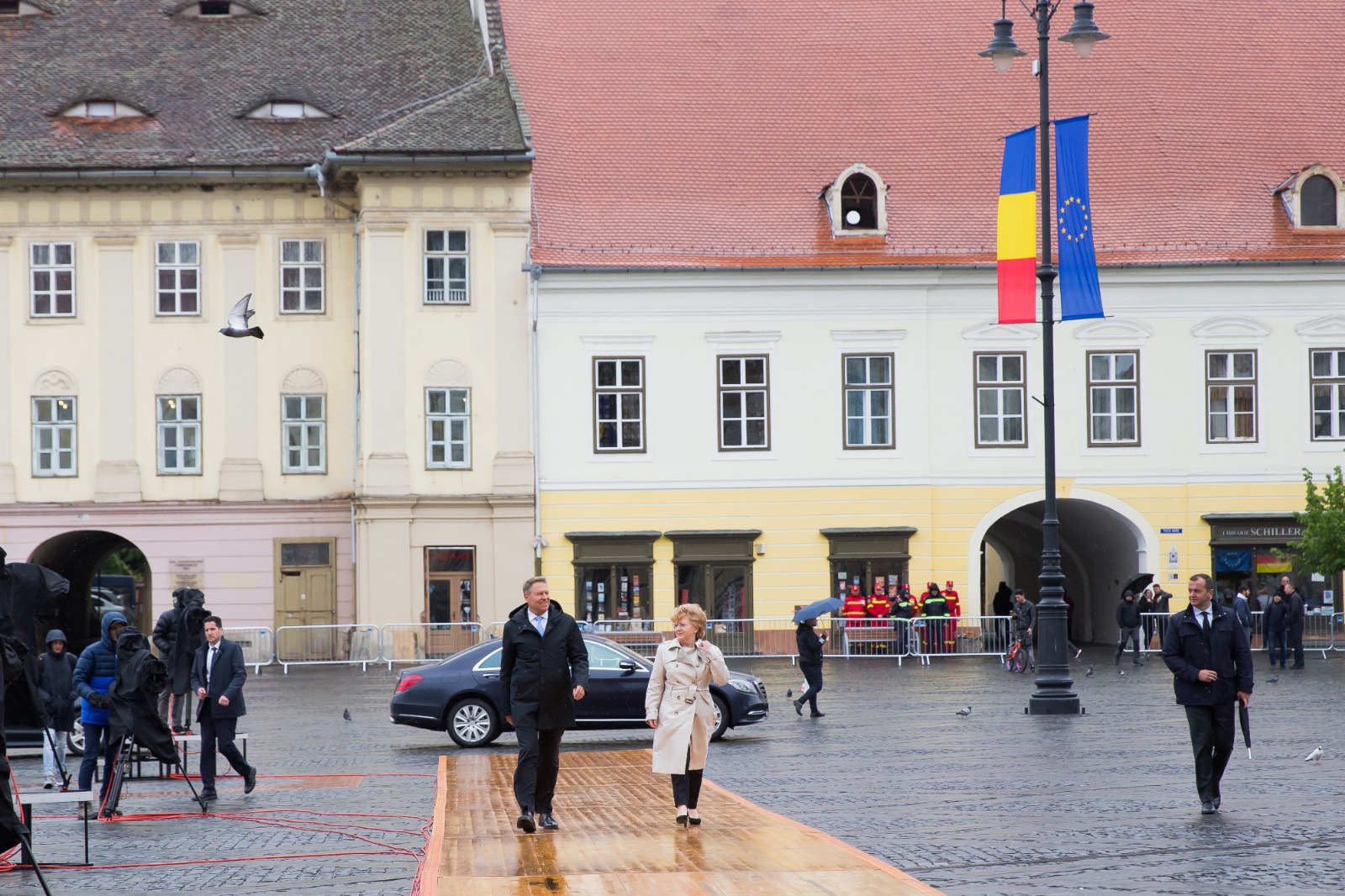„Au loc ultimele probe, ultimele verificări. Cel puțin din ce am văzut până acum în oraș, lucrurile sunt foarte bine pregătite. Doamna primar, (n.r. – Astrid Fodor), s-a străduit foarte mult și rezultatul se vede. Astăzi, voi vizita toate locațiile unde se va desfășura summit-ul. Informațiile mele de până acum arată că totul este foarte bine pregătit”, a declarat șeful statului.