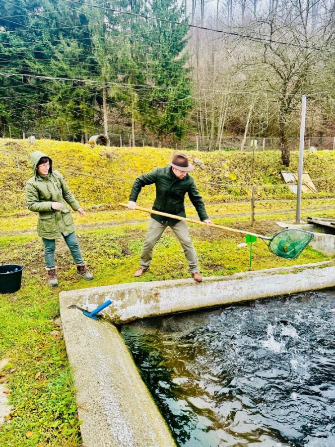 „Există acest mit al hormonilor de creștere. Este total greșit”, ne explică proprietarul. „Păstrăvul curcubeu pe care îl creștem are nevoie de un an și jumătate pentru a ajunge la 300 de grame. Nu poți grăbi natura fără să distrugi calitatea.”