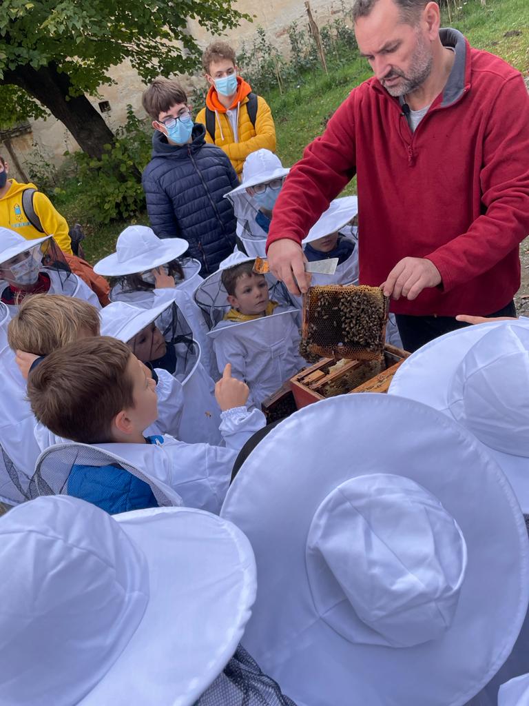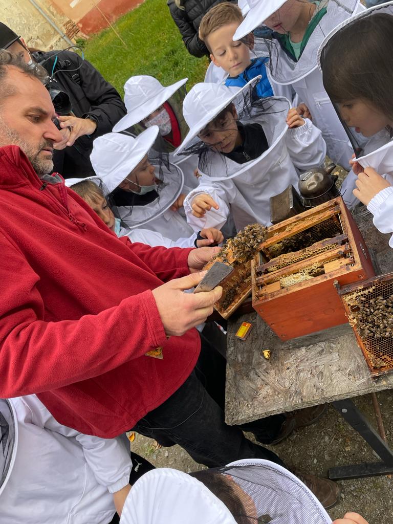 Apicultorul le povestește ucenicilor săi că are aproape 300 de familii de albine, găzduite în mai multe zone, între Sibiu și Mediaș. Albinele trăiesc în zone retrase, în mediul lor natural, aproape de păduri. „În acest fel, asigurăm sănătatea albinelor, dar și calitatea produselor apicole obținute”, spune apicultorul.