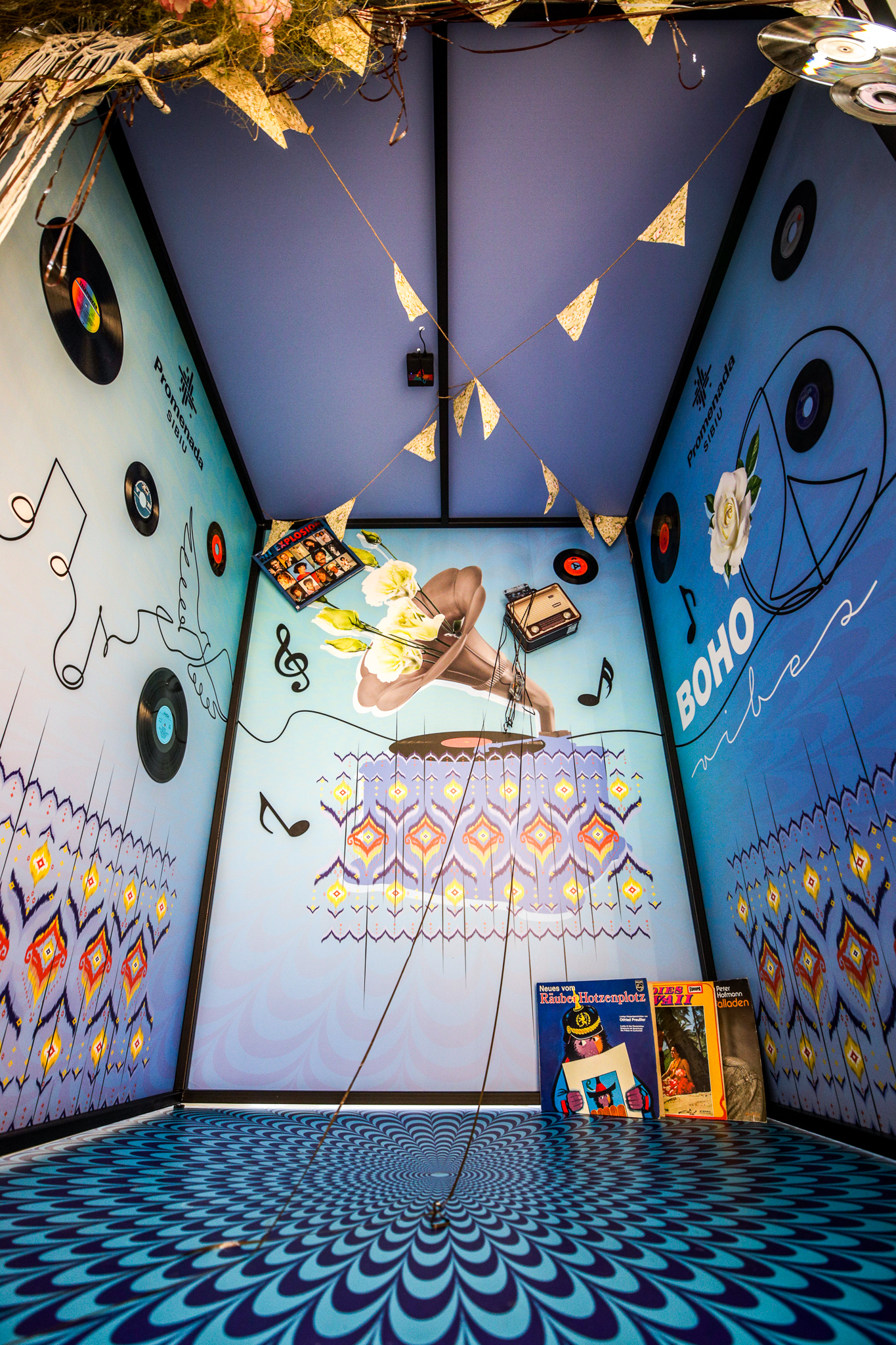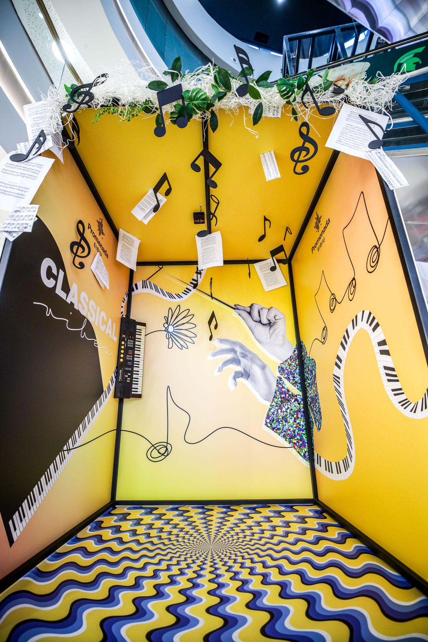 Iar, pentru ca experiența să fie completă, noua campanie de primăvară aduce un decor creativ și inedit în zona de Info Point: cabine muzicale în care vizitatorii centrului comercial se pot bucura de experiențe muzicale diferite. Patru cabine diferite ca gen muzical, decoruri și grafică aduc o doză de optimism celor care aleg să se bucure câteva clipe de o deconectare: electro, muzică clasică, rock sau boho.