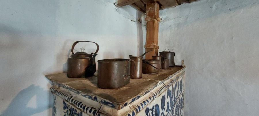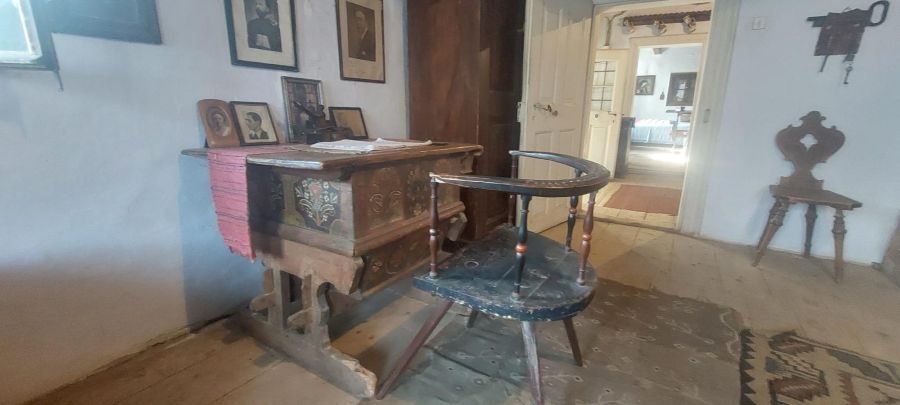 Casa pare mare pentru vremea respectivă, dar și ei erau mulți. Au fost șapte persoane, la un moment dat. Este făcută din piatră, cărămidă, lut, chirpici. Intru în ea, împreună cu strănepotul lui Goga, care îmi prezintă încăperile. „Octavian s-a născut în această cameră, chiar în acel pat, spune legenda”, îmi relatează ghidul meu arătându-mi spre locul cu pricina.