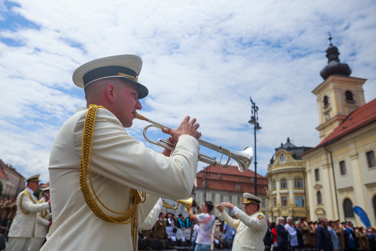 GALERIE FOTO Cu tocile pe cap și cu inima plină de emoție, studenții ULBS și cei ai Academiei Militare au râs, au plâns și au cântat, în Piața Mare