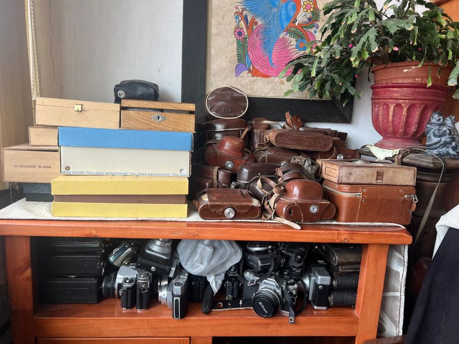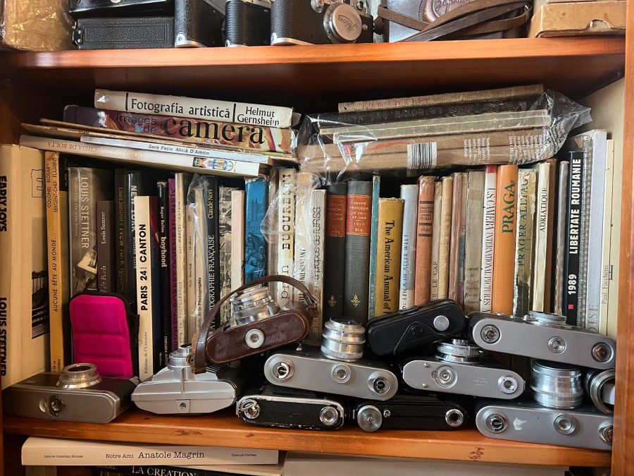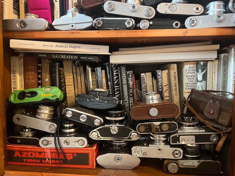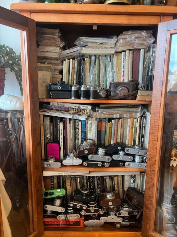 Mă învârt puțin până dau de locul unde își ține Louis comorile. Dar izbutesc. Sunt primit cu căldură de către el și soția sa. Holul ce duce până sufrageria fotografului nu-mi spune nimic, dar când dau cu ochii de camera principală mă lovesc de rafturi burdușite de cărți, dosare și cutii pline cu fotografii de tot felul. Înghesuite prin dulapuri, zeci de modele de aparate foto stau și reflectează la ce imagini au reușit să surprindă cu obiectivele lor.
