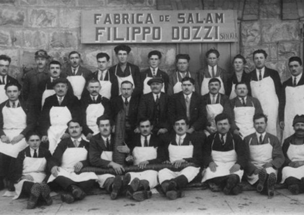 Cei cărora le datorăm salamul de Sibiu sunt un italian și un german. Ei sunt cei care au pus cap la cap procesul tehnologic. Astfel, Filippo Dozzi deschide prima fabrică de salam de Sibiu la Sinaia, în 1910. Iar Josef Theil face același lucru la Mediaș.