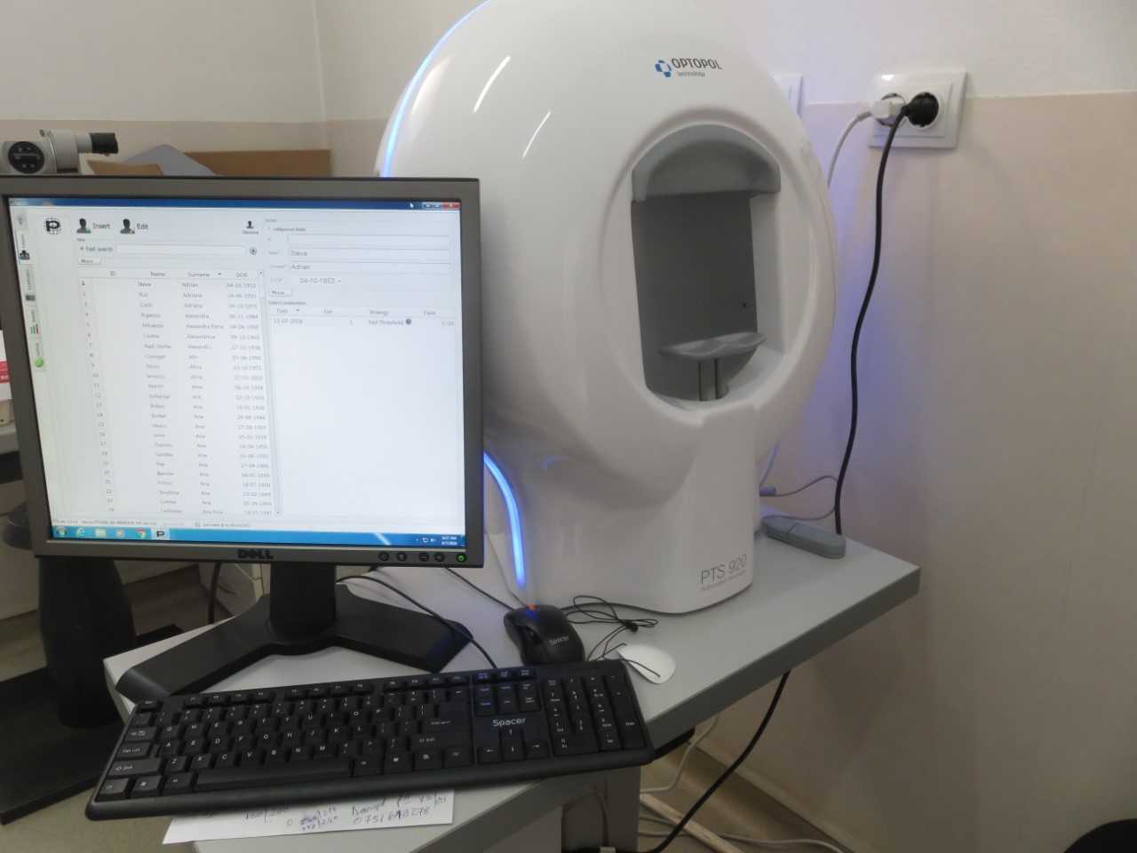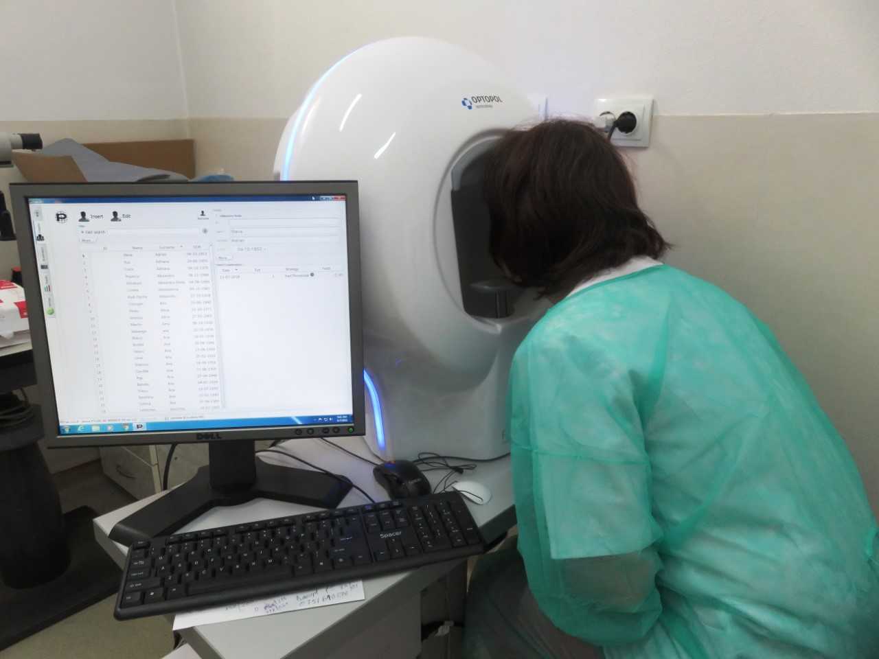 -câmp vizual – perimetrie computerizată – utilizat pentru diagnosticarea si urmărirea pacienților cu glaucom si alte afecțiuni ale retinei și nervului optic;