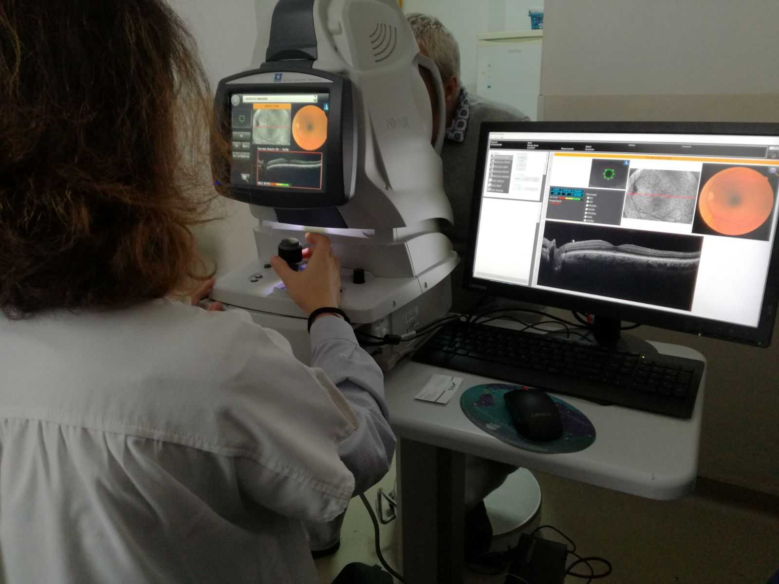 -tomograf în coerență optică – OCT. “Aparatul este utilizat pentru examinarea tomografică a retinei, a nervului optic, a corneei și a unghiului irido-cornean, util in diagnosticarea precoce și monitorizarea pacienților cu degenerescenta maculară legată de vârsta, retinopatie diabetică, glaucom etc. Spre exemplu, pacienții cu retinopatie diabetică pot beneficia de investigații (OCT) și tratament de specialitate (fotocoagulare laser). De asemenea, urmărirea pacienților cu degenerescență maculară legată de vârstă se poate efectua cu ajutorul OCT-ului de care dispune secția oftalmologie”, explică medicii oftalmologi.