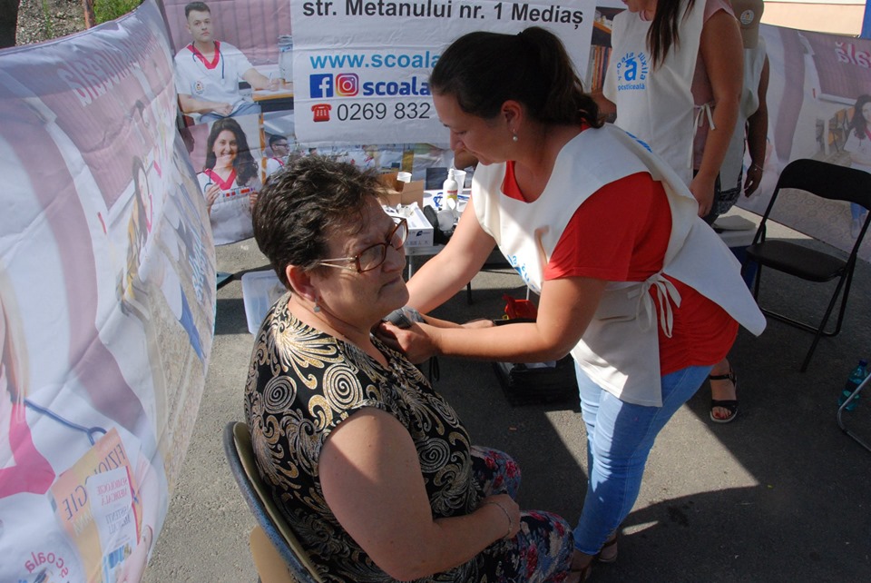 Primăria Mediaș și Școala Postliceală Auxila în municipiul de pe Târnava Mare acțiunea de măsurare a stării de sănătate a populației.