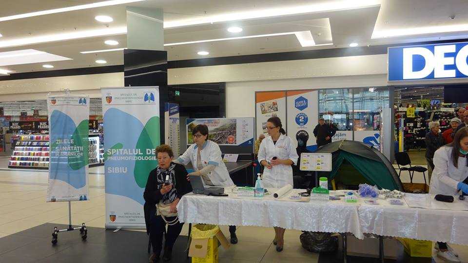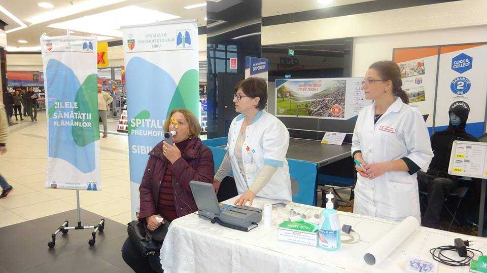 Aproximativ 400 de sibieni au beneficiat de testare gratuită prin intermediul spirometriilor, în cadrul Zilelor Sănătății Plămânilor, organizate de Spitalul de Pneumoftiziologie Sibiu în perioada 14-16 noiembrie. Evenimentele au fost prilejuite de Ziua Mondială de Luptă împotriva Bronhopneumopatiei Obstructive Cronice (14 noiembrie) și Ziua Națională fără Tutun (15 noiembrie) și s-au desfășurat la Shopping City Sibiu și la Spitalul de Pneumoftiziologie.