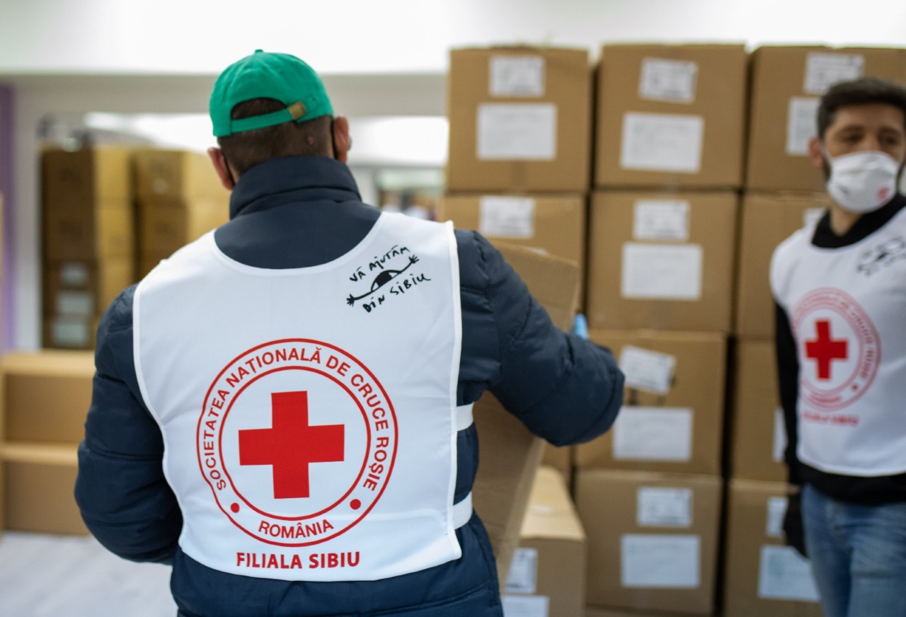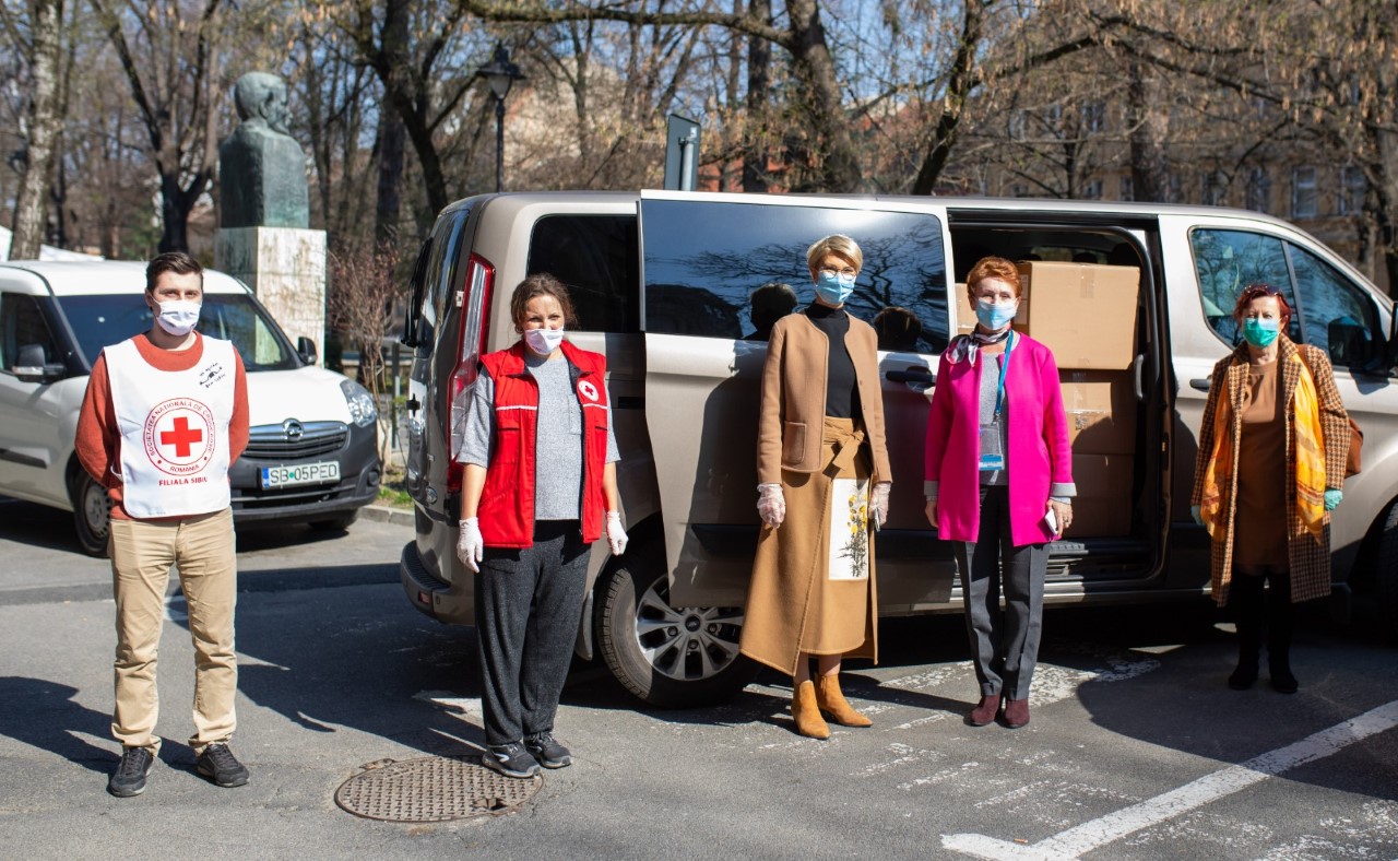 Le mulțumim pe această cale încă o dată voluntarilor inimoși veniți de pe platforma Vă ajutăm din Sibiu care ne-au ajutat cu descărcarea acestui transport generos, cu pregătirea pachetelor și livrarea acestora în tot județul dar și doamnei Daniela Cîimpean – Președinta Consiliului Județean Sibiu pentru că ne-au pus la dispoziție Sala Transilvania unde ne putem desfășura activitatea umanitară în condiții optime”, au transmis responsabilii Crucii Roșii Sibiu.