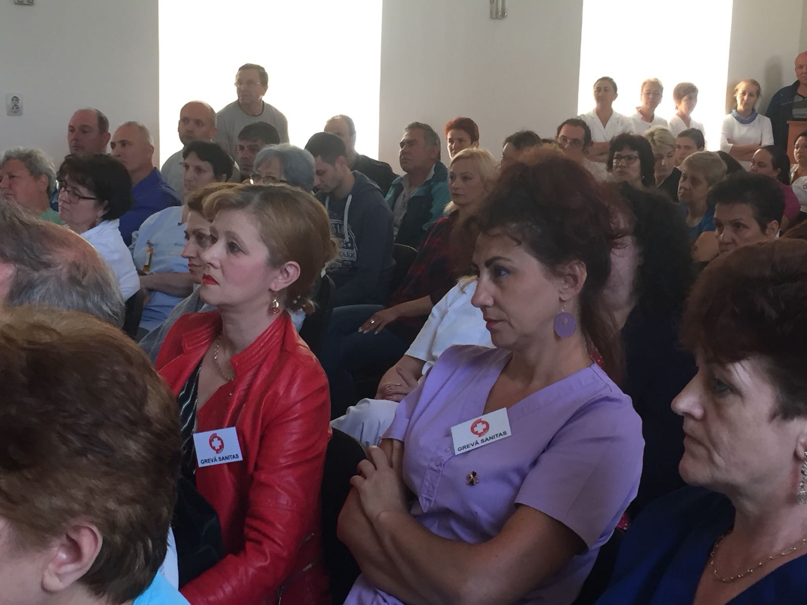 La Sibiu, mai mulţi angajaţi ai unităţilor sanitate cu paturi au încetat lucrul la ora 9.00 și au participat la greva de avertisment pana la ora 11. Oamenii sunt nemulțâimiți de scăderea veniturilor.