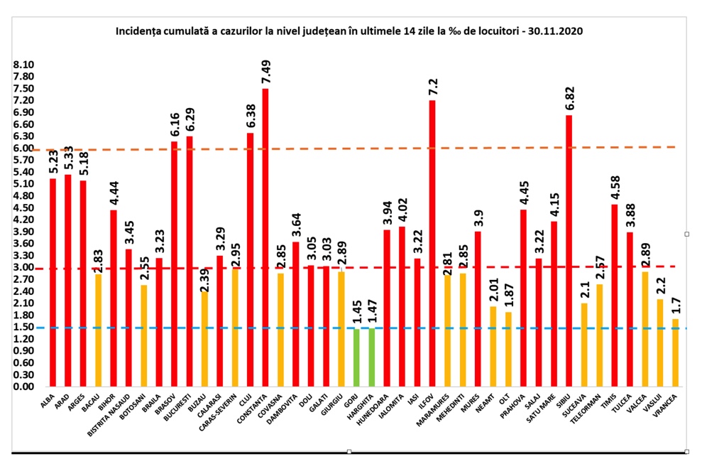 În intervalul 29.11.2020 (10:00) – 30.11.2020 (10:00) au fost raportate 138 de decese (78 bărbați și 60 femei), ale unor pacienți infectați cu noul coronavirus, internați în spitalele Alba, Argeș, Arad, Bacău, Bihor, Bistrița-Năsăud, Botoșani, Brăila, Brașov, Călărași, Caraș-Severin, Cluj, Constanța, Dâmbovița, Dolj, Giurgiu, Gorj, Harghita, Ialomița, Iași, Maramureș, Mehedinți, Neamț, Prahova, Sălaj, Sibiu, Suceava, Timiș, Vaslui, Ilfov și Municipiul București.