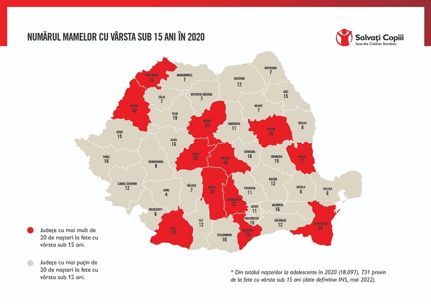 România este pe primul loc în Uniunea Europeană în ceea ce privește numărul mamelor cu vârste mai mici de 15 ani. Cele mai multe cazuri se înregistrează în zonele rurale defavorizate, unde tinerele nu au acces la monitorizarea adecvată a sarcinii.