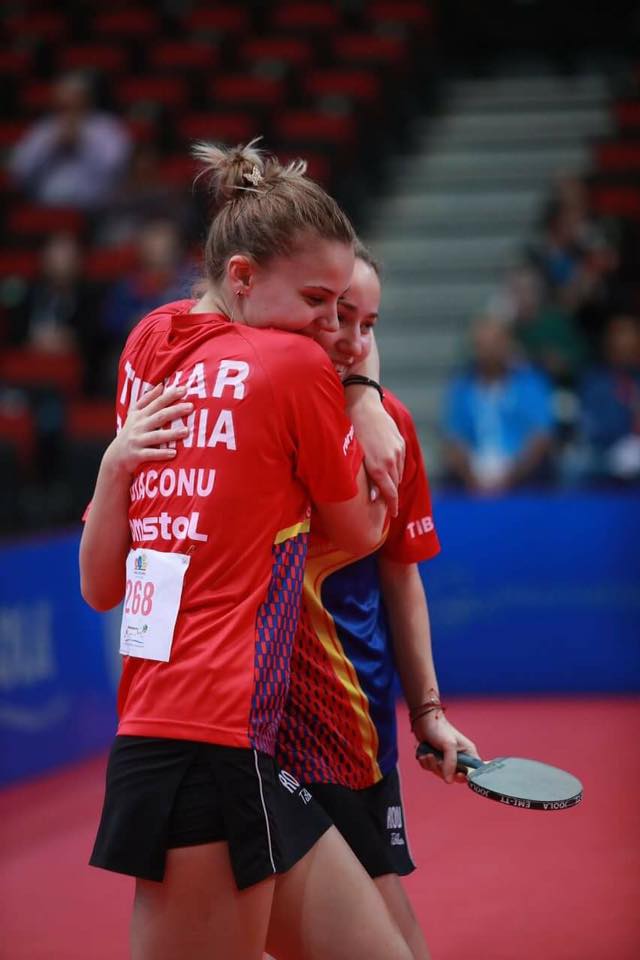AD: Nu ne-am aşteptat să luăm o medalie la dublu. Având experienţa de anul trecut când am pierdut în primul tur, ne aşteptam ca la echipe să ne luptăm la o medalie. După ce am câştigat la dublu parcă nu ne venea să credem. Am jucat în fiecare meci la fel de bine. Semifinala a fost foarte grea, dar am reuşit să revenim. Înainte de meci nu ne gândeam să câştigăm, am intrat relaxate. La 2-0 pentru ele am simţit că le putem bate pentru că nu făceau ceva special. La 3-2 şi 10-5, cu 5 mingi de meci pentru adversare am reuşit să revenim pentru că nu mai aveam presiune şi nu ne gândeam că o să pierdem meciul. În finală, am început foarte bine meciul. Am făcut 3-0 la seturi. Nu aveam ce pierde. La 3-0, japonezele au schimbat tactica de joc şi ne-a luat 2 seturi să ne obişnuim. Era 3-2, am început foarte bine, dar la ultimele puncte au apărut emoţiile. Ne era teamă să nu pierdem setul pentru că ştiam că va fi foarte greu la 3-3, ne gândeam numai să punem mingea pe masă. La final nici nu ne-a venit să credem că suntem campioane mondiale. Tremuram de emoţie! Eram foarte fericite, era ceva de nedescris. O bucurie foarte mare, am zâmbit tot timpul.