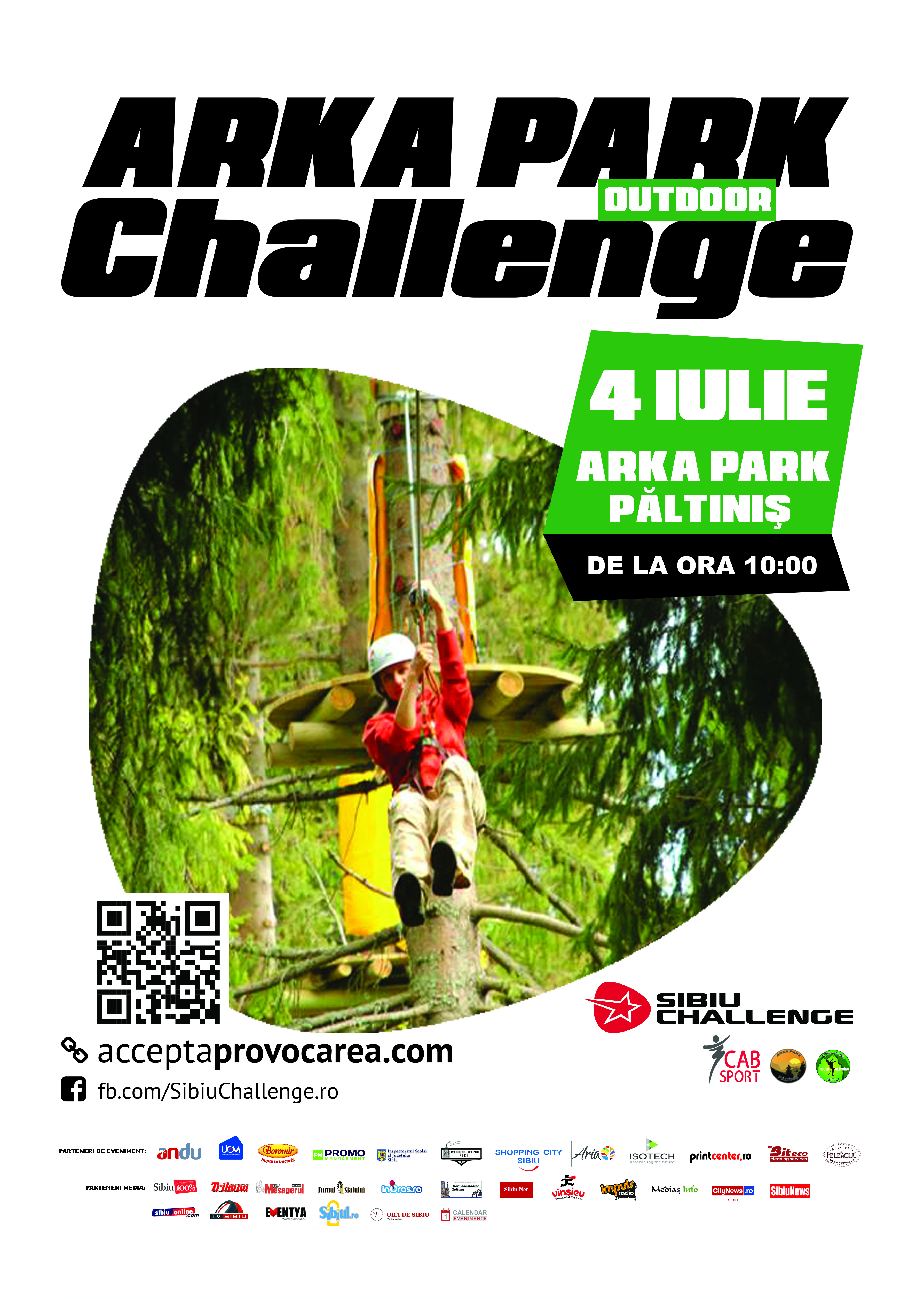 Sâmbăta aceasta, iubitorii de aventură au parte de o surpriză la „înălţime”. Ei sunt aşteptaţi să participe la Arka Park Outdoor Challenge, o competiţie de escaladă. Evenimentul se va desfăşura pe traseele de escaladă din parcul „Arka Park Păltiniş”. Startul acţiunii se va da de la ora 10 dimineaţa. Se poate înscrie oricine doreşte să facă mişcare. Întrecerea se desfăşoară pe diferite categorii de vârstă : copii (7-10 ani), copii (11-14 ani), tineri (15-17 ani) şi adulţi (peste 18 ani).