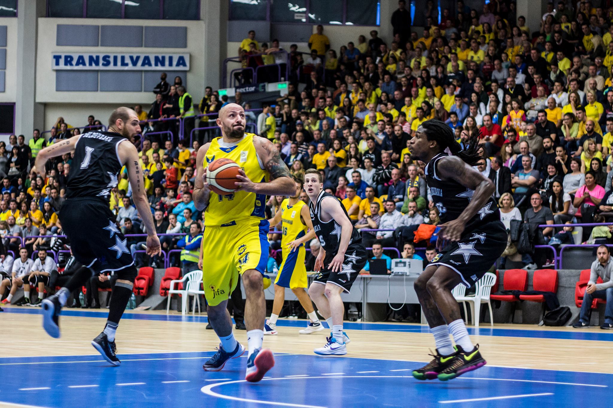 Seară amară pentru cei 2000 de suporteri ai galben-albaştrilor ce au fost prezenţi în Sala Transilvania la „Derbiul Ardealului”! Marii rivali de la Universitatea Cluj au plecat victorioşi din arena sibiană, după ce au învins CSU la 3 puncte diferenţă, scor 87 la 84. Partida a fost dominată în cea mai mare parte de elevii pregătiţi de către Dan Fleşeriu, dar gazdele nu au reuşit să se detaşeze decisiv nici un moment, iar oaspeţii au dat lovitura pe final. Practic, sibienii s-au aflat la conducere timp de 35 de minute şi 57 de secunde, pe când adversarii din Cluj au avut avantaj numai 3 minute şi 42 de secunde. Marcel Davis a fost cel mai bun jucător şi marcator al meciului. Americanul a fost într-o dispoziţie excelentă pe tot parcursul jocului şi a înscris şi din poziţii dificile. Davis a avut 24 de puncte, 7 pase decisive şi 5 recuperări. Chris Cooper cu 19 puncte şi Kevin Hardy cu 14 au fost ceilalţi doi baschetbalişti care au punctat bine pentru CSU. De partea cealaltă, Kendall Dykes (23 pts.) şi Vlad Moldoveanu (20 pts.) au avut o seară excelentă, iar Ousmanne Barro (13 pts. şi 9 recuperări) a fost de neoprit sub panou.