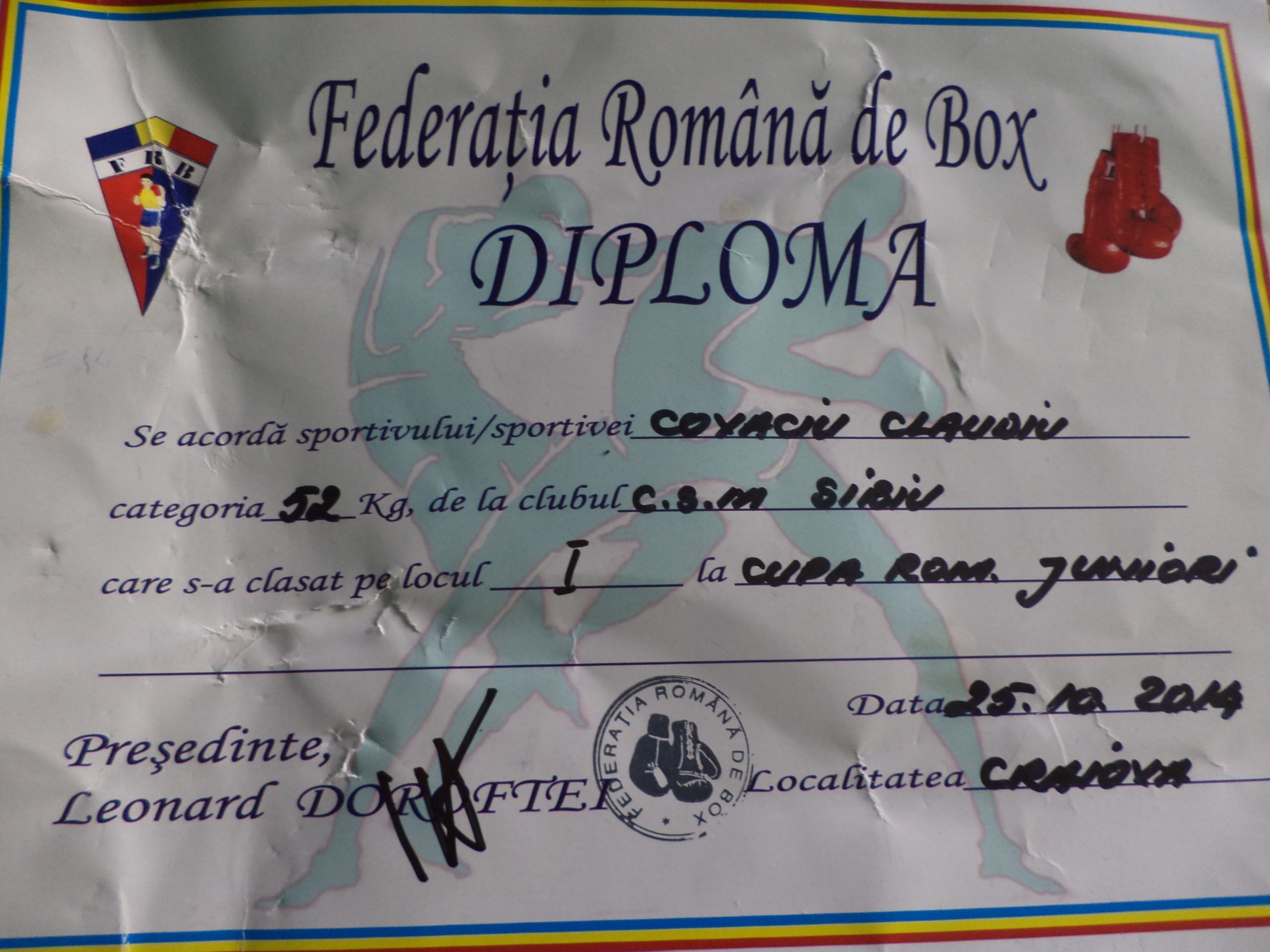 Claudiu Covaciu şi-a trecut încă o Cupă a României în palmares. După ce în 2013 ridicase trofeul deasupra capului, la sfârşitul lunii octombrie, sibianul a făcut-o din nou. De data aceasta, la Craiova, şi la juniori. Boxerul de la CSM Sibiu s-a impus la categoria 52 de kilograme. Pentru a urca pe prima treaptă a podiumului, acesta a învins un piteştean, un craiovean şi pe sportivul din Nochrich, Sergiu Marin. Claudiu Covaciu se pregăteşte la Draşov sub comanda lui Gheorghe Niţă. Claudiu Covaciu : „În fiecare an am câştigat Cupa României. Vreau să merg tot mai departe”. Pe lângă acest rezultat excelent, Claudiu a obţinut medalia de bronz la Campionatul Naţional, s-a impus la competiţiile organizate la Câmpia Turzii şi Alba Iulia, şi a fost la selecţia naţională pentru Campionatul European. Astfel, anul competiţional 2014 a fost o nouă reuşită pentru el. Gheorghe Niţă (antrenor CSM Sibiu) : „Claudiu Covaciu este un boxer pentru profesionişti. Îi copiază pe mulţi de acolo, are lovituri tari şi precise. Apoi, pleacă, are ochi”.