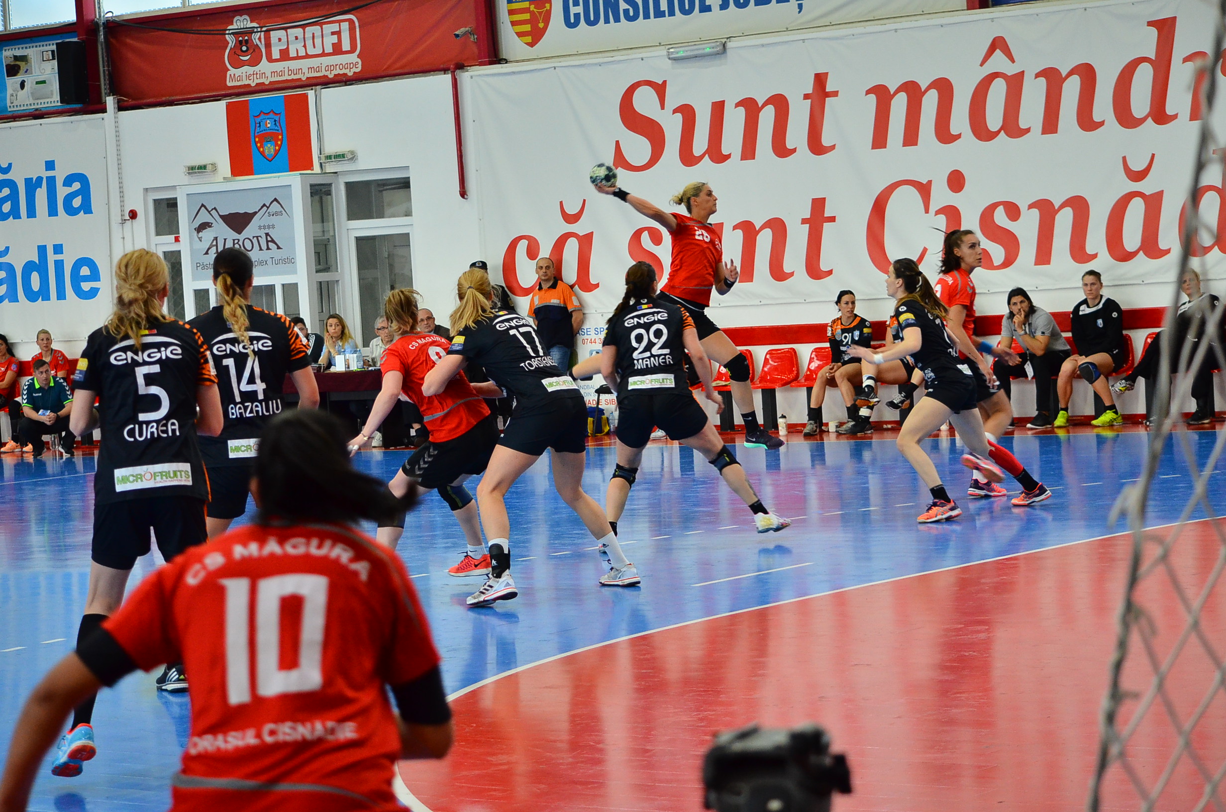 De aproape două ore de handbal spectacol au avut parte oamenii din Cisnădie în această zi! În Sala Polivalentă, Campioana Europei, CSM Bucureşti a făcut show. Cea mai bună echipă de club din lume în handbalul feminin a câştigat la 9 goluri diferenţă în faţa Măgurei Cisnădie. A fost 30-21 (18-12) pentru oaspete, care au jucat relaxat şi şi-au impus jocul în faţa handbalistelor lui Alexandru Weber.
