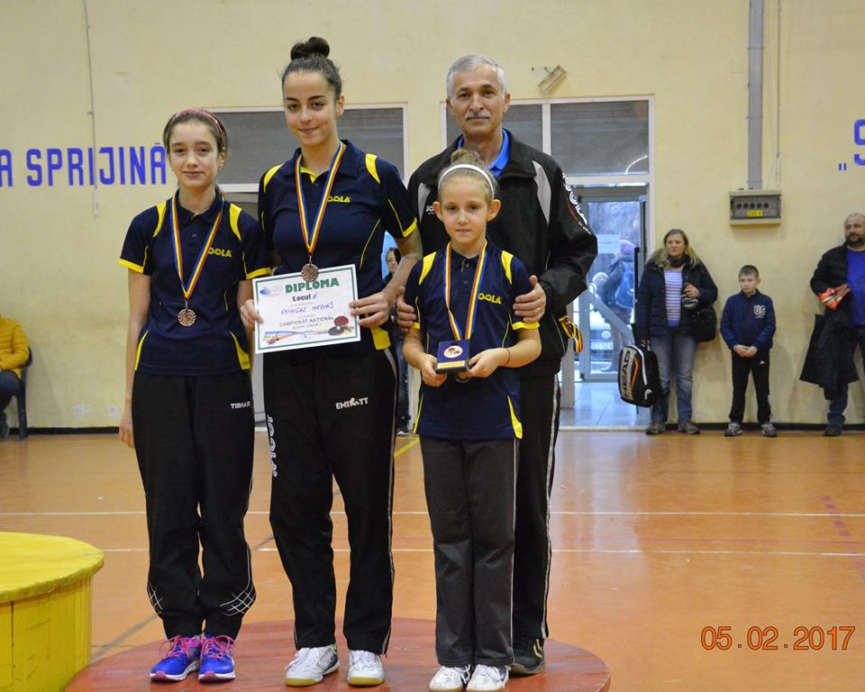 Echipa de cadete antrenată de Gheorghe Vaida a urcat pe podiumul Campionatului Naţional al României la Tenis de Masă. Cu o cadetă în întrecere, Cristina Dumitrescu şi două minicadete, Alina Moca şi Beatrice Hila, medieşencele s-au luptat pentru poziţiile superioare şi au încheiat încă o competiţie în ţară cu medalii la echipe. Evenimentul a avut loc în week-end la Constanţa. Trebuie remarcat faptul că Beatrice Hila are doar 10 ani, iar Alina Moca are 11 ani, fiind mult mai mici decât majoritatea jucătoarelor care au evoluat în concurs, colega lor Cristina având 14 ani. „Nivelul în ţară este slab în acest moment la această categorie de vârstă. Cristina mea în ultima perioadă nu a avut nici un interes la antrenament. La naţionale a jucat foarte slab, exact aşa cum s-a pregătit. Din cauza ei am pierdut locul 2. Alina a jucat mult peste nivelului ei. Mult peste ce m-am aşteptat de la ea. Beatrice a jucat binişor”, a declarat antrenorul Gheorghe Vaida.