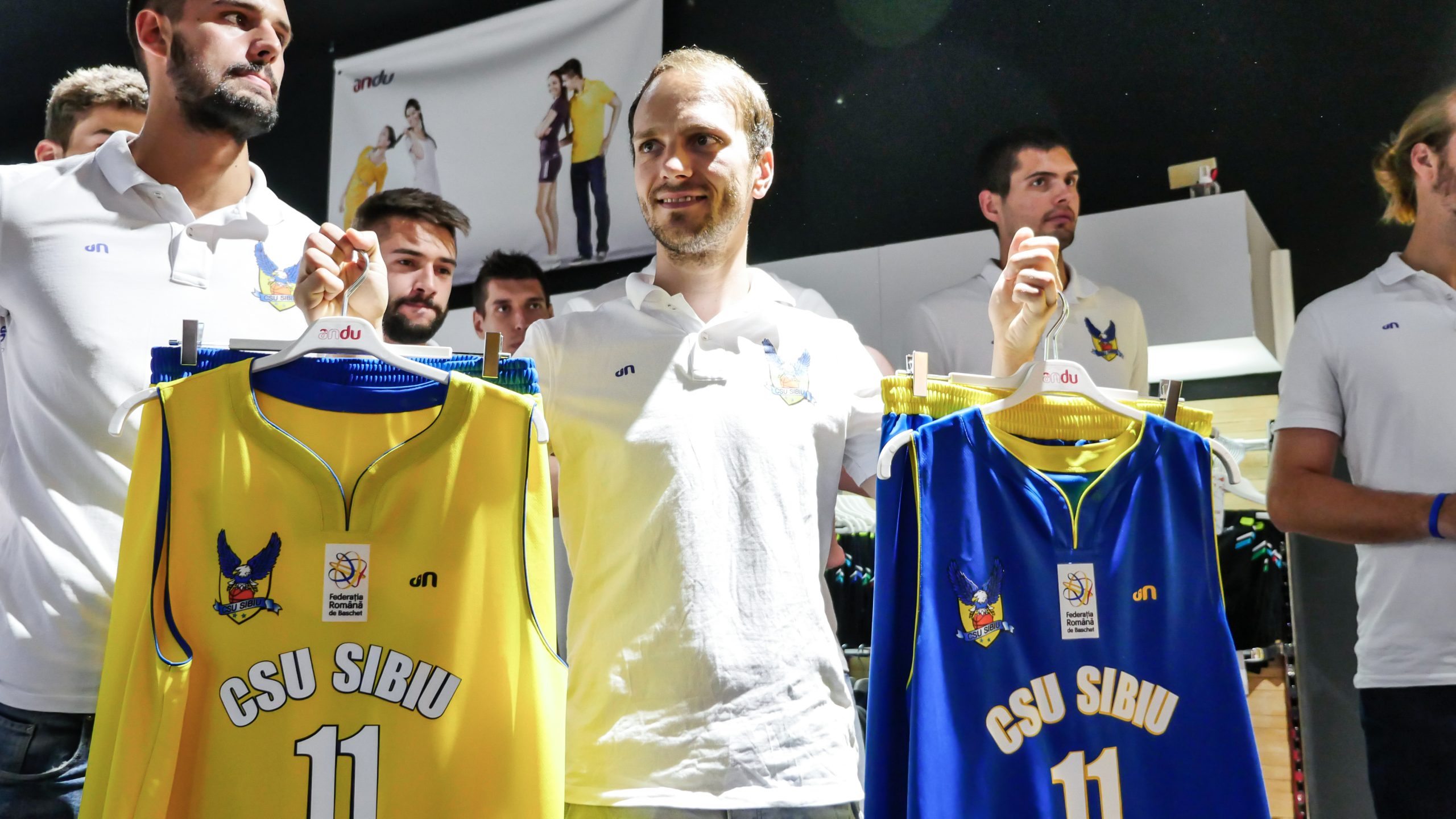 Prezentarea oficială a noilor echipamente a avut loc la magazinul Andu, din Shopping City Sibiu, partener al „vulturilor”. În faţa suporterilor înfocaţi ai trupei din oraşul de pe malul Cibinului, şi a reprezentanţilor presei, Calotă şi compania au venit încă o dată mai aproape de sibieni. Ei au invitat pe toată lumea să asiste încă de joi, 27 august, la primul meci important susţinut de CSU Sibiu, în faţa celor de la Steaua CSM Eximbank Bucureşti. Joc care va marca o nouă eră pentru galben-albaştri, cu tandemul Floca-Buduleci la cârmă pe parte administrativă şi Dan Fleşeriu pe banca tehnică.