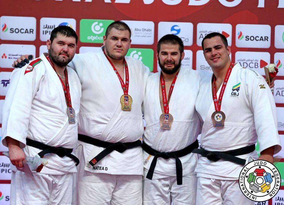 daniel-natea-abu-dhabi2Imnul naţional al României a răsunat pentru a patra oară în acest an la categoria plus 100 de kilograme. Cel mai bun judokan al ţării a câştigat marele Grand Slem de la Abu Dhabi! În perioada 28-30 octombrie, în Emiratele Arabe Unite, sibianul Daniel Natea a fost de neoprit pe tatami. El i-a învins prin ippon pe brazilianul Joao Cesarino Silva şi pe rusul Soslan Bostanov, iar în finală a trecut de bielorusul Aleksandr Vahoviak, prin wazzari, yuko şi 2 penalizări. În primul meci i-a fost suficient 40 de secunde pentru a avansa mai departe, iar în al doilea mai puţin de 2 minute. La eveniment au participat 155 de concurenţi, din 34 de ţări. Dintre aceştia, 95 au fost prezenţi la masculin şi 60 la feminin.