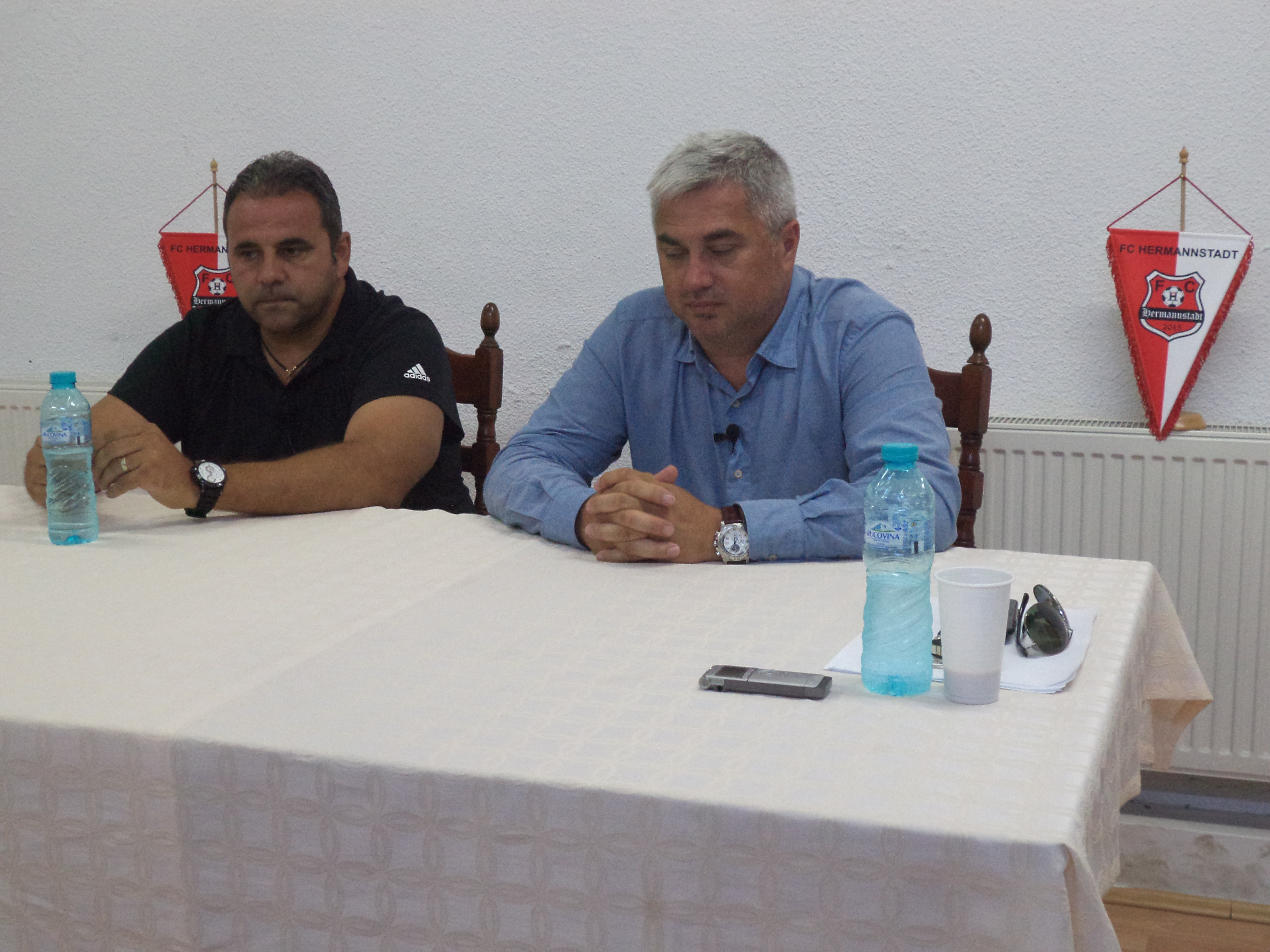 DSC02874După ce a efectuat primul antrenament ca nou antrenor al lui FC Hermannstadt, formația sibiană l-a prezentat pe acesta și în fața presei, astăzi, într-o conferință susținută la Stadionul Municipal. Alexandru Pelici este ultimul om care a dus Sibiul pe prima scenă a fotbalului românesc, iar anul acesta va încerca să o facă din nou. ”Am ținut să avem această întâlnire ca să-l prezentăm într-un cadru oficial pe noul nostru antrenor principal, în persoana lui Alexandru Pelici. Un antrenor cunoscut la Sibiu, iubit la Sibiu și care a făcut performanță. Un antrenor cu mare experiență la nivelul primelor două ligi din România. Ne bucurăm foarte mult că am reușit să ajungem la o înțelegere cu dânsul și sunt convins ca echipa pe care o va face la Sibiu va avea rezultatele pe care ni le dorim noi și domnia sa”, a declarat președintele FCH, Teodor Birț.