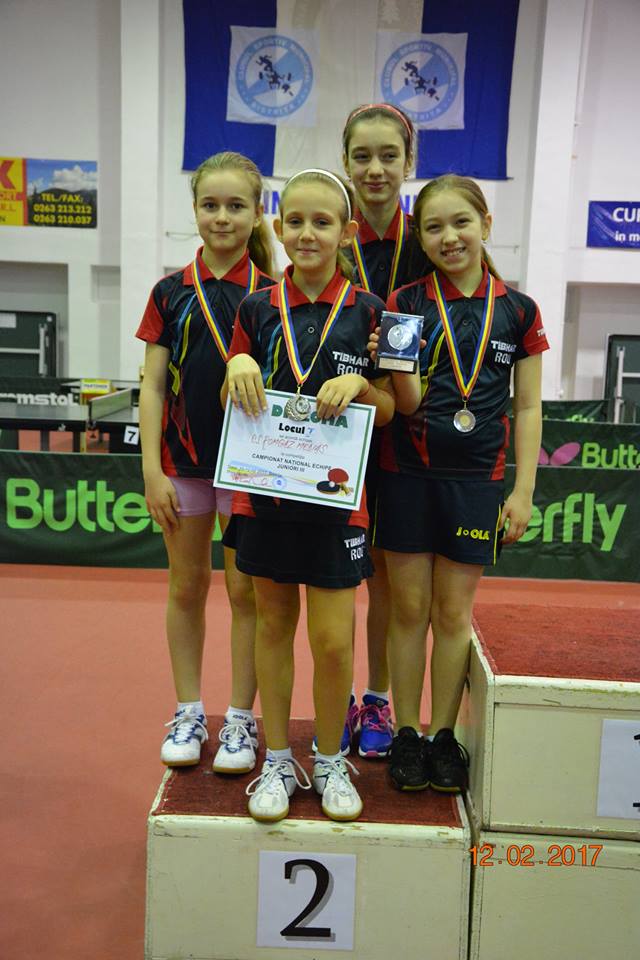 Fetiţele de la CS Romgaz Mediaş au devenit vicecampioane naţionale la tenis de masă, categoria minicadete. Echipa alcătuită din tenismenele Alina Moca, Beatrice Hila, Gabriela Herciu şi Mara Moca a câştigat şapte din opt partide, meciul pentru aurul naţional fiind pierdut de către medieşence în joc decisiv. Victoria a revenit jucătoarelor de la CS Mureşul Luduş, iar CSM Zalău a fost pe trei. Evenimentul a avut loc la Bistriţa în perioada 10-12 februarie. Rezultatele elevelor lui Gheorghe Vaida au fost următoarele: 4-0 ACS Dumbrăviţa, 4-0 Clubul Elevilor Carei şi 4-1 LPS Slatina I în grupele preliminare, 3-4 Mureşul Luduş, 4-1 CSM Buzău I şi 4-0 ACS Dumbrăviţa I în grupele semifinale şi 4-3 CSM Zalău, 4-3 CSŞ Târgu Mureş, în grupa finală. Trebuie specificat că Luduşul şi Mediaşul nu au mai jucat şi în finală, scorul din semifinale a fost luat ca punctaj în grupa finală.